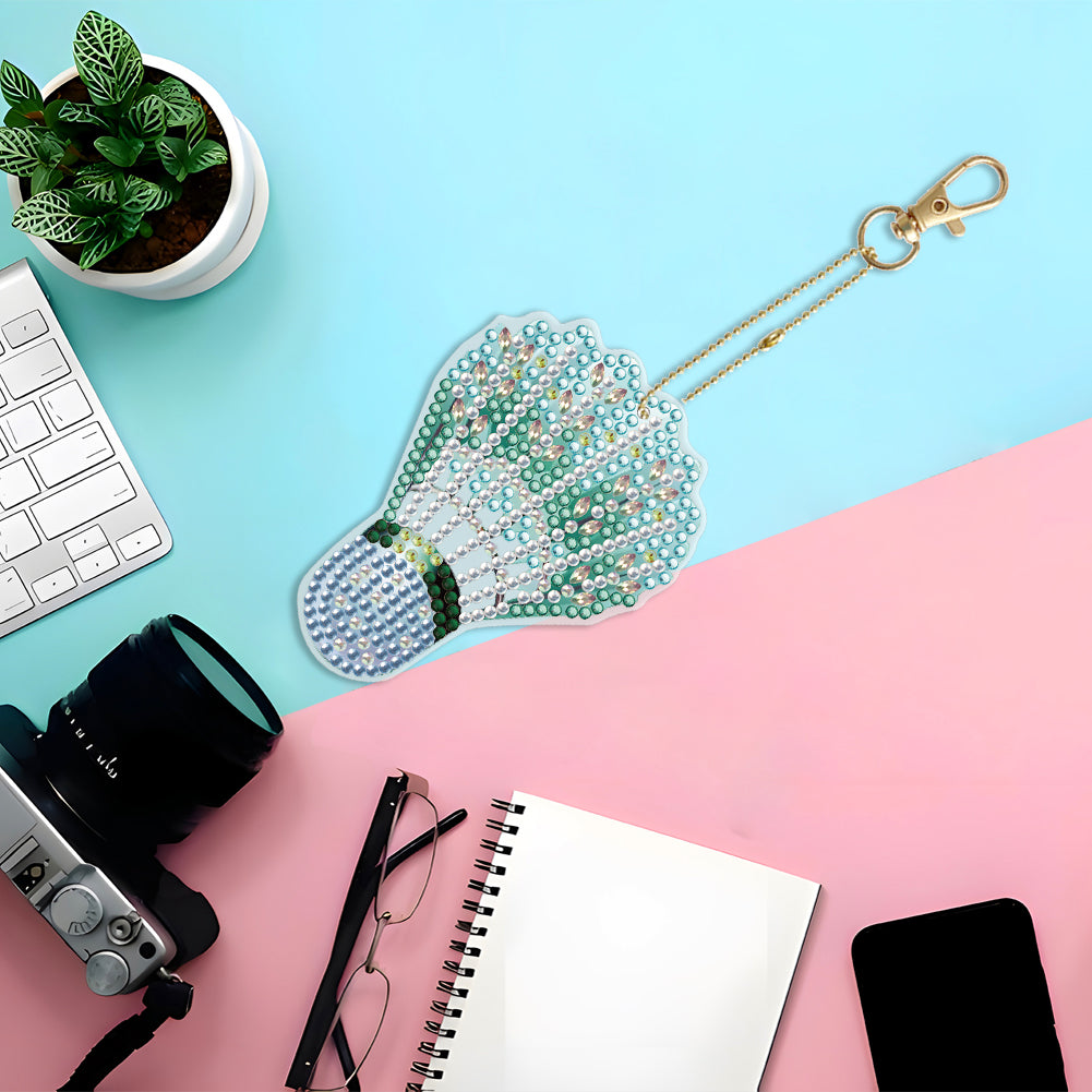 Double Sided Diamond Art Keyring Badminton Diamond Painting Art Keychain Pendant