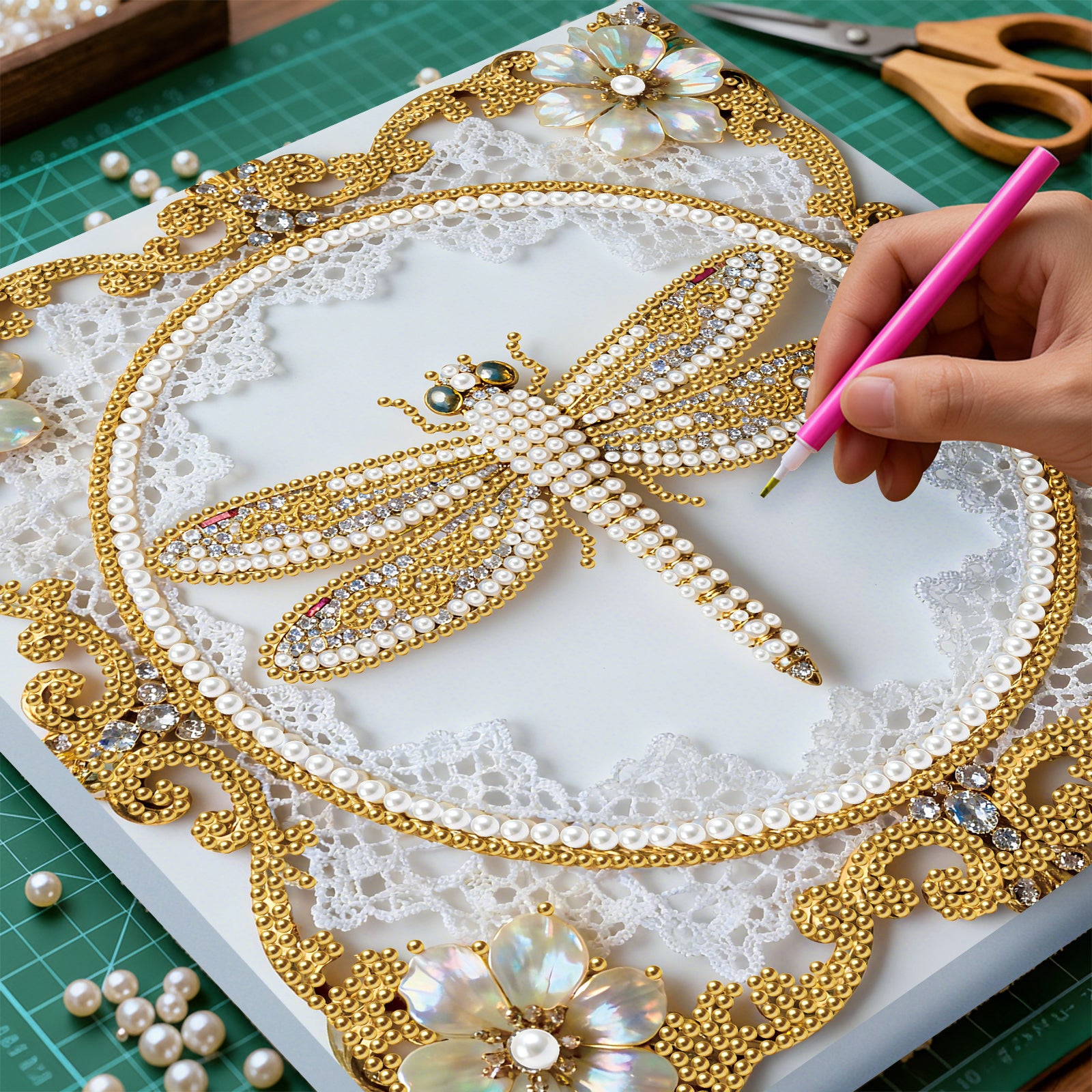 Dragonfly - DIY Pearl Gem Art Diamond Painting Kits With Framefor Home Decor -25x25cm