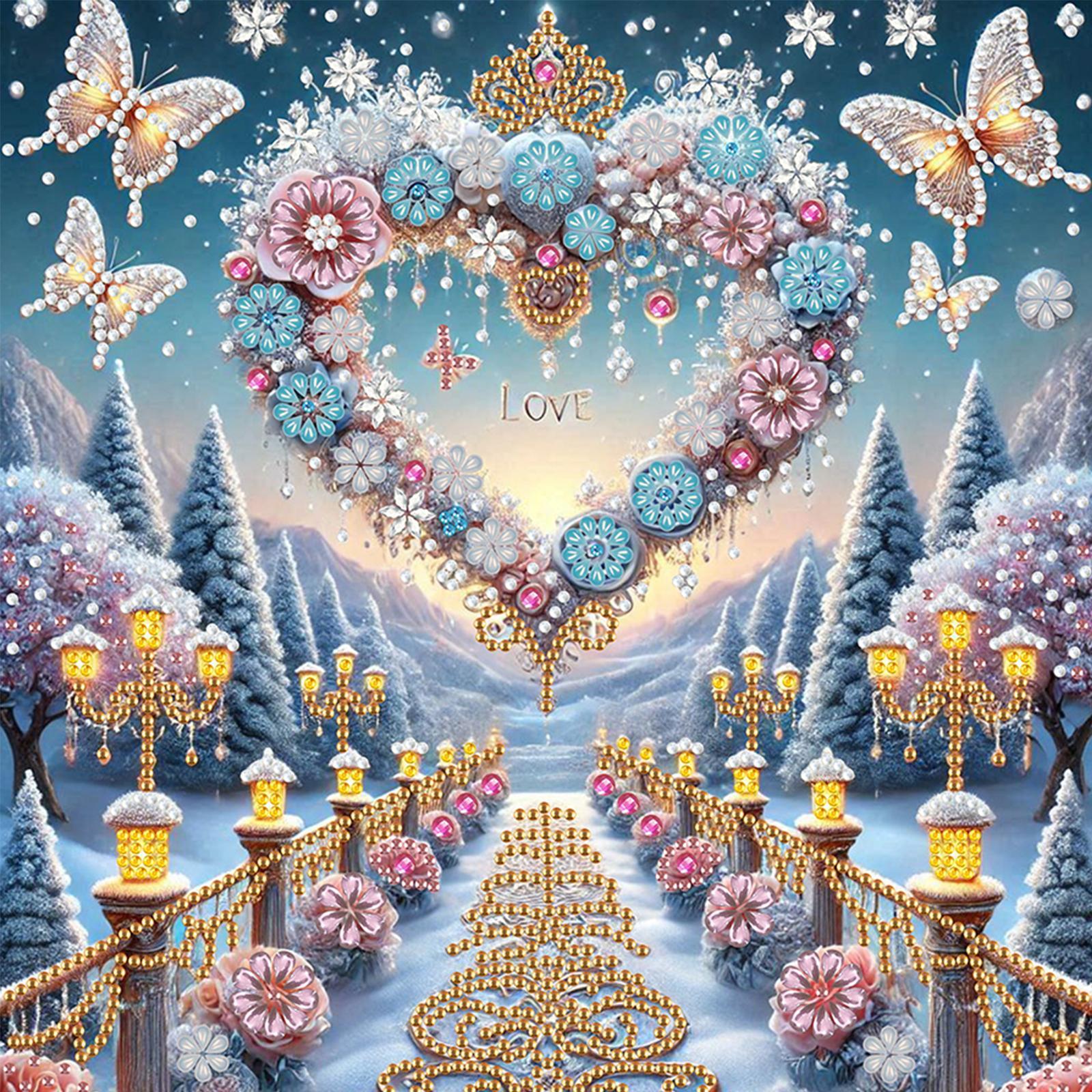 Dreamy Flower Hearts - Special Shaped Drill Diamond Painting 30*30CM