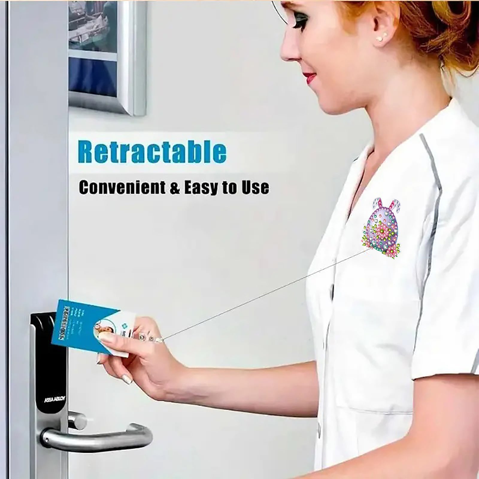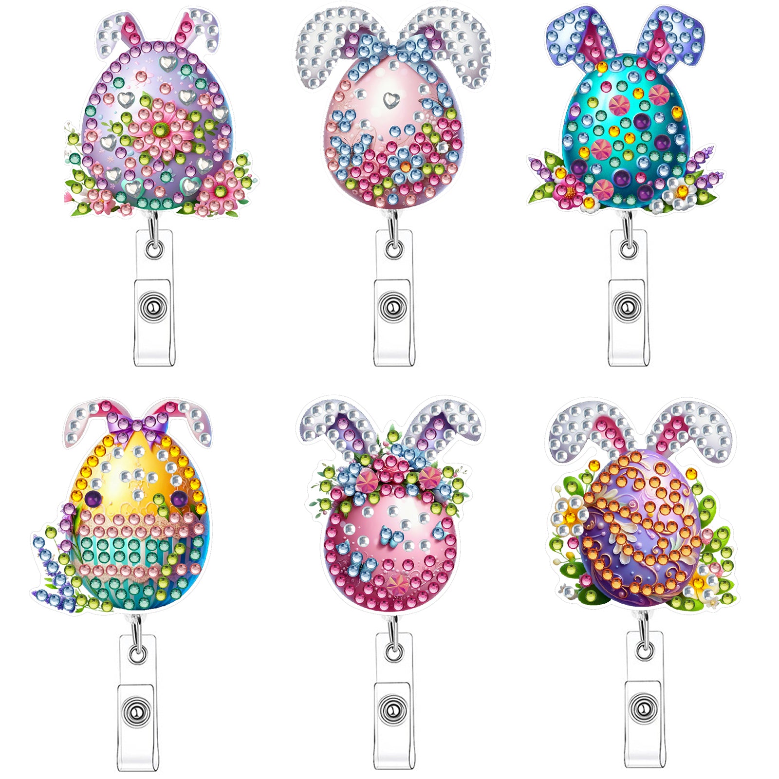 Easter Egg 6Pcs DIY Diamond Painting ID Holder with Clip Rhinestone Badge Reel