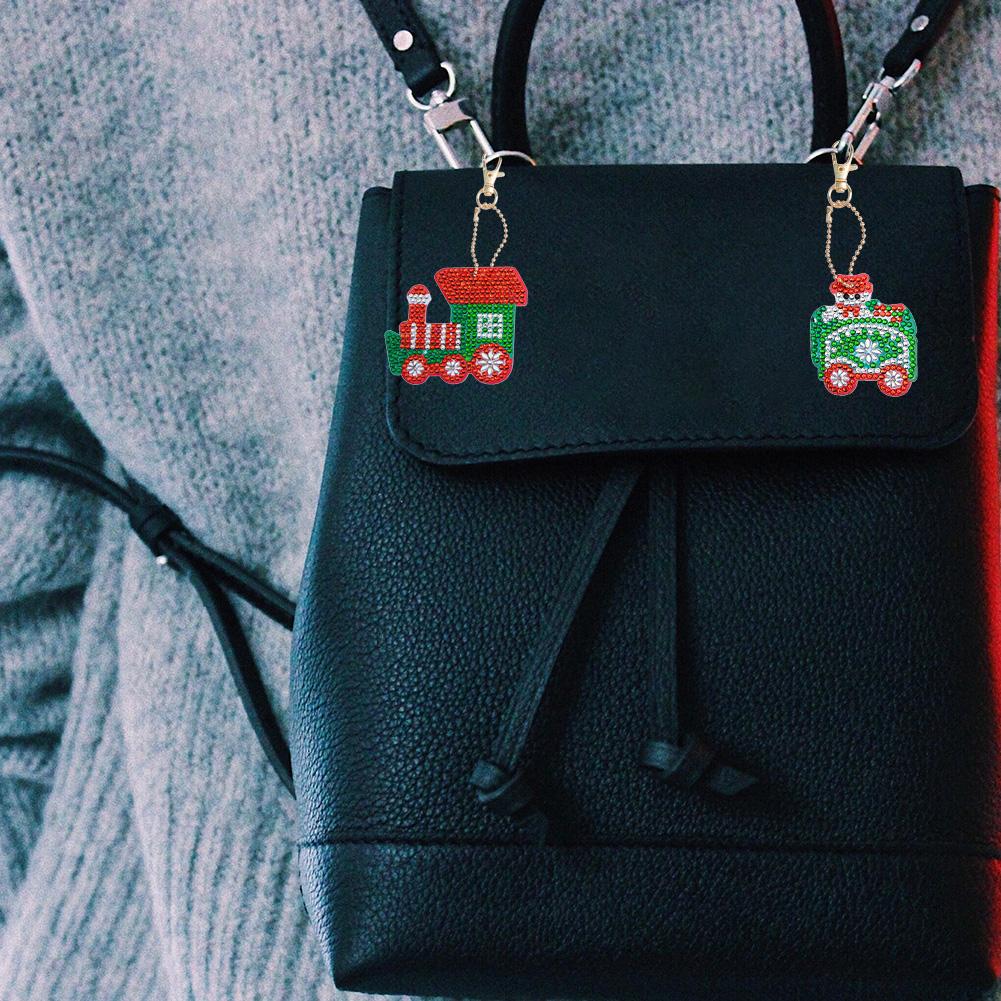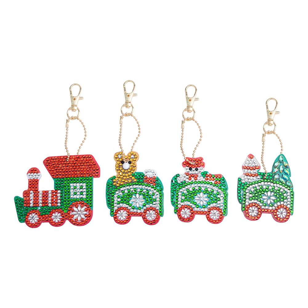 4pcs DIY Full Drill Special-Shape Diamond Painting Christmas Train Keychain