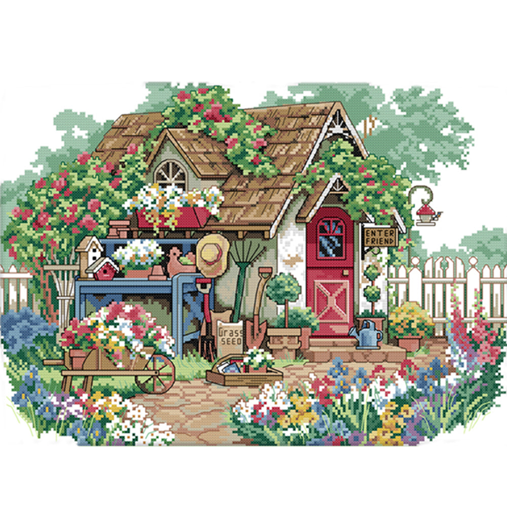 Flower Cottage - 14CT Stamped Cross Stitch 44*33CM