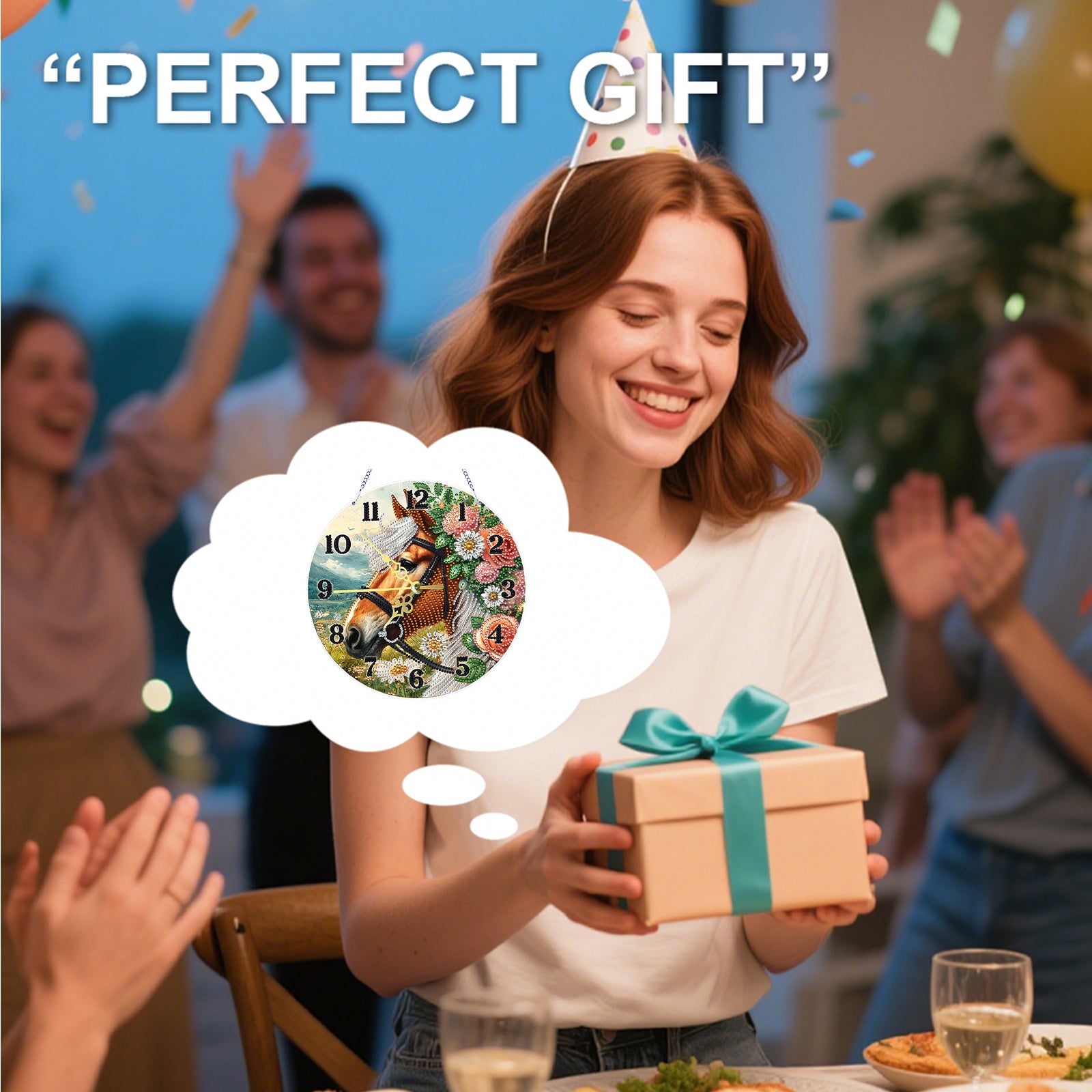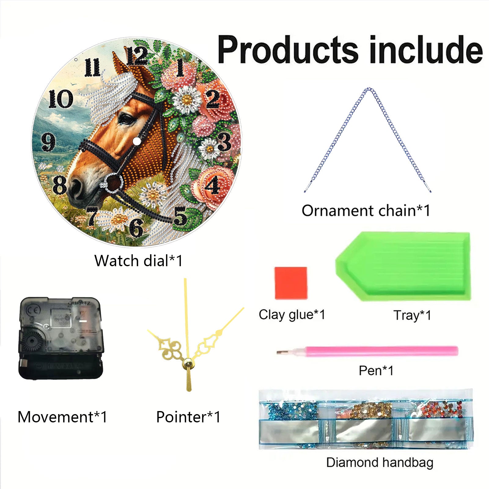 Flower Horse 2D Flat DIY Acrylic Diamonds Painting Clocks Home Bedroom Decor