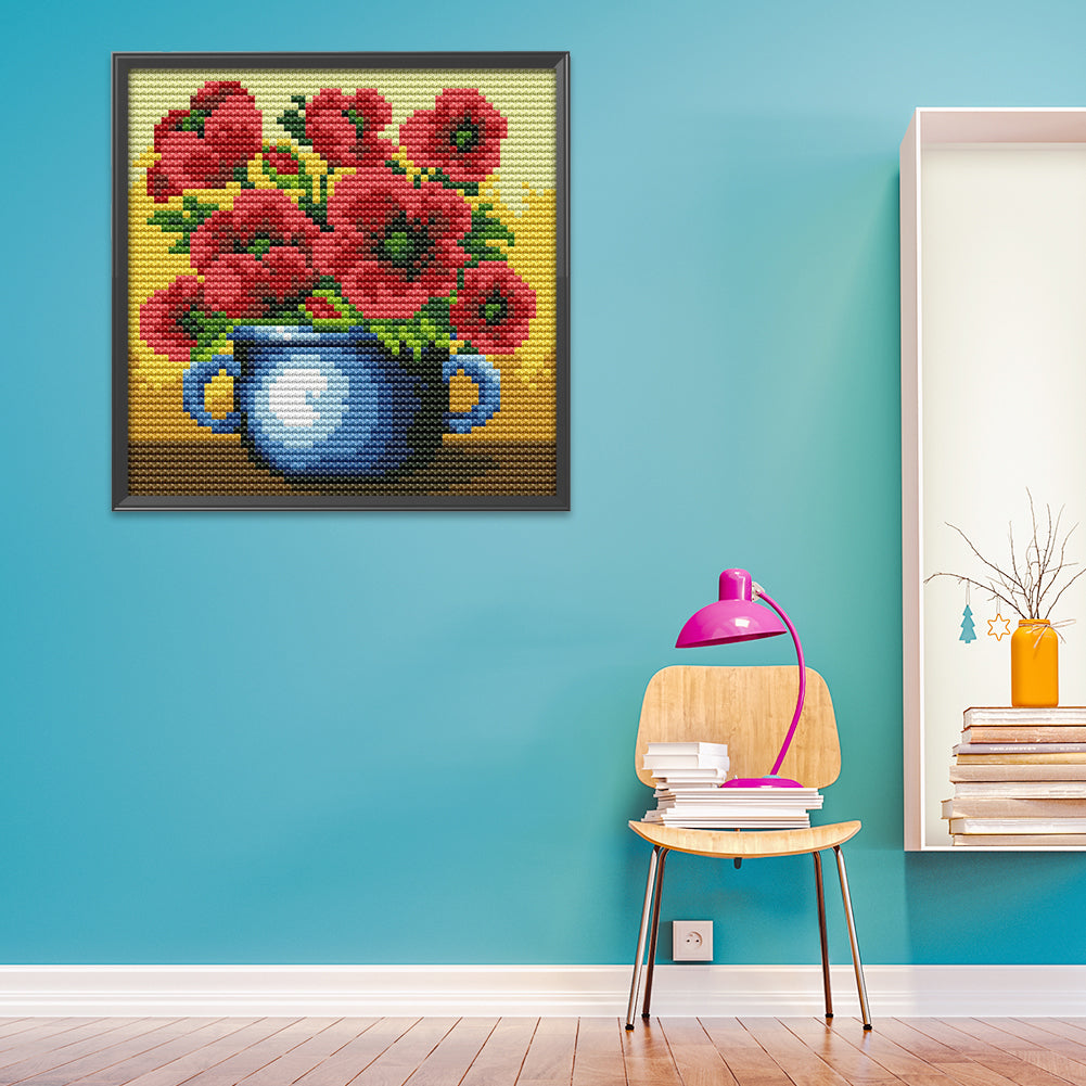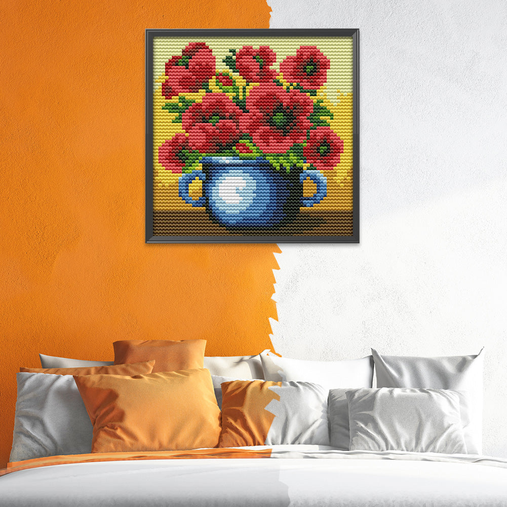 Flowers - 14CT Stamped Cross Stitch 16*16CM