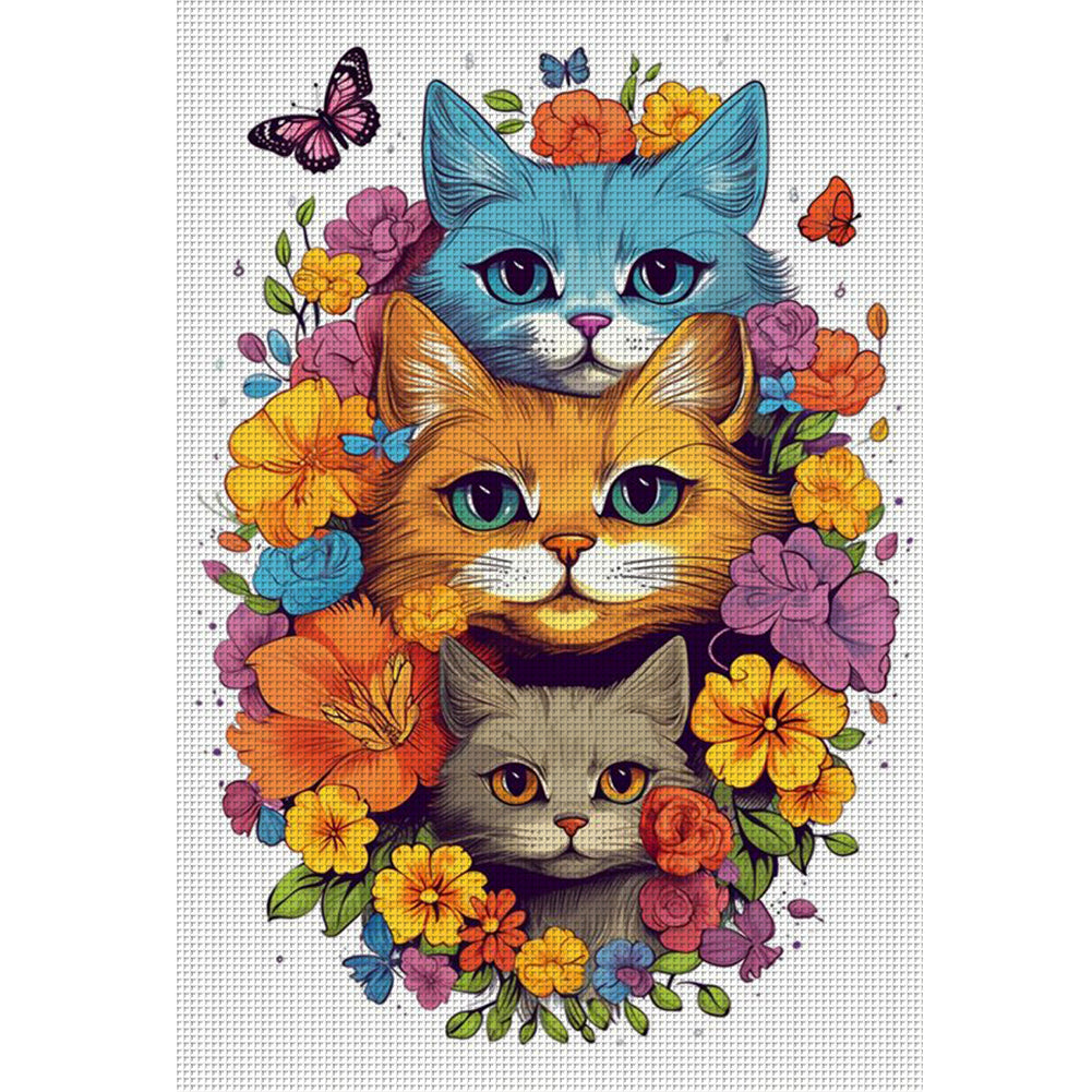 Flowers And Cat - 11CT Stamped Cross Stitch 40*60CM