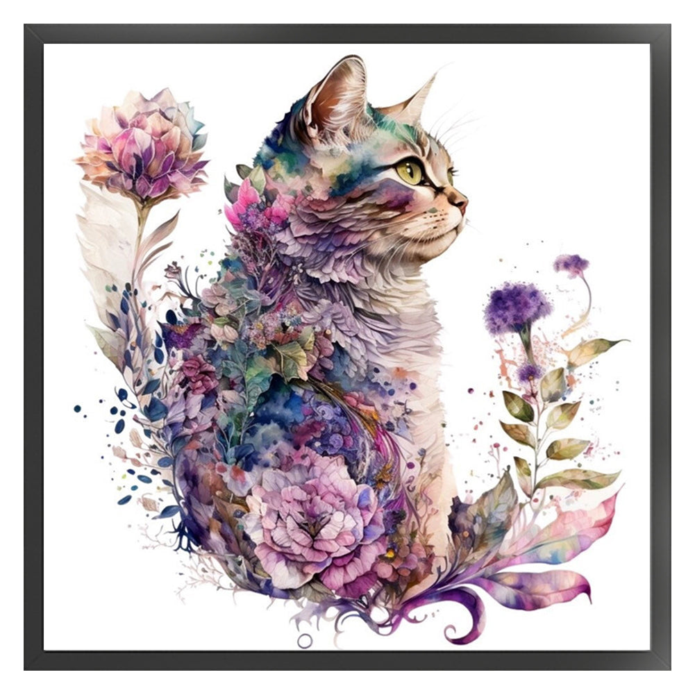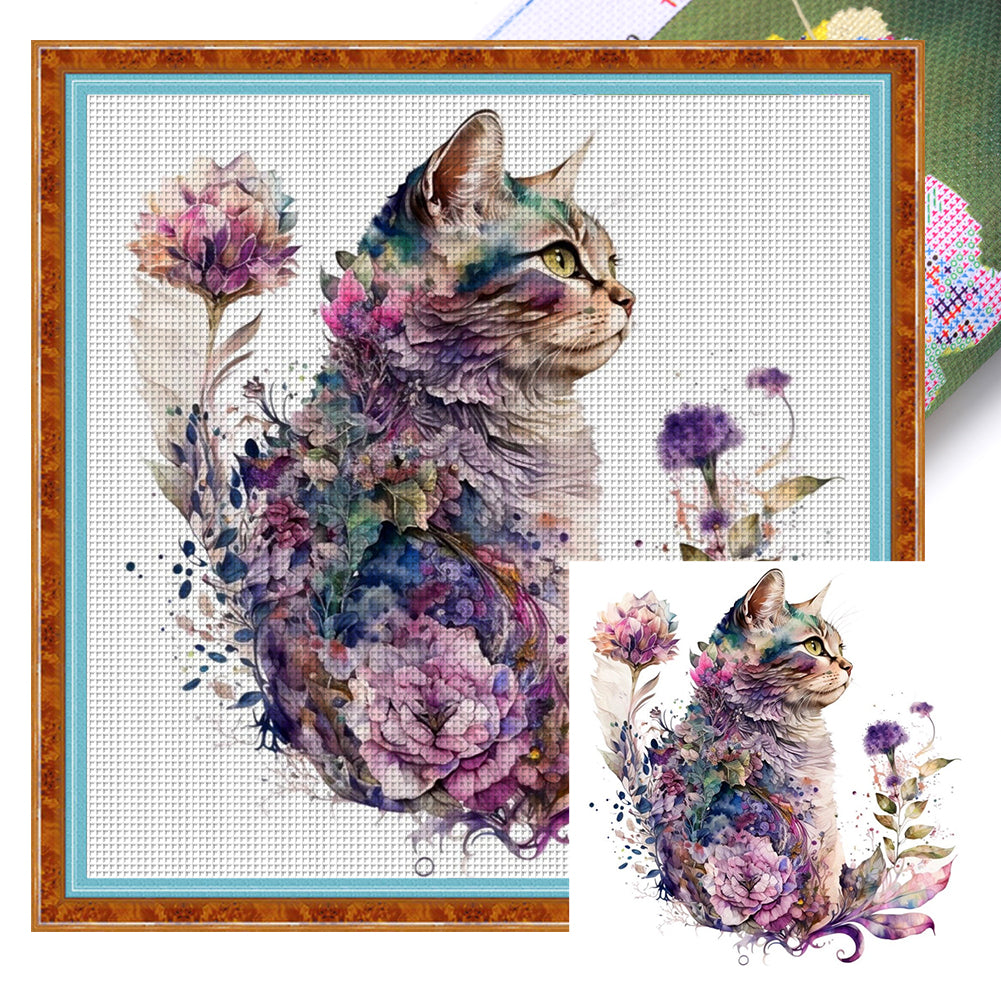 Flowers And Cat - 16CT Stamped Cross Stitch 40*40CM