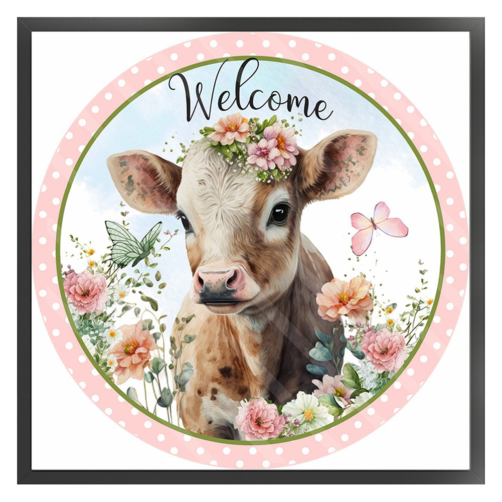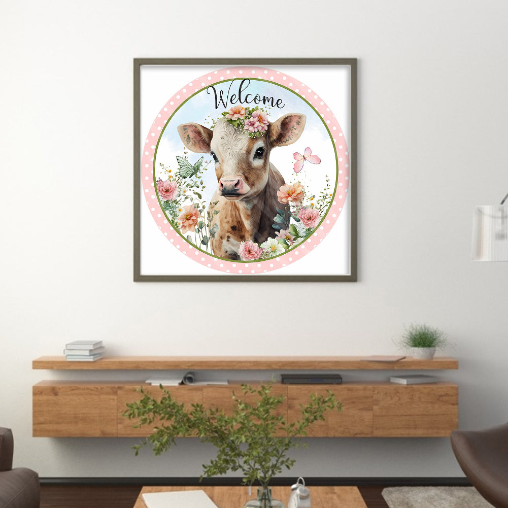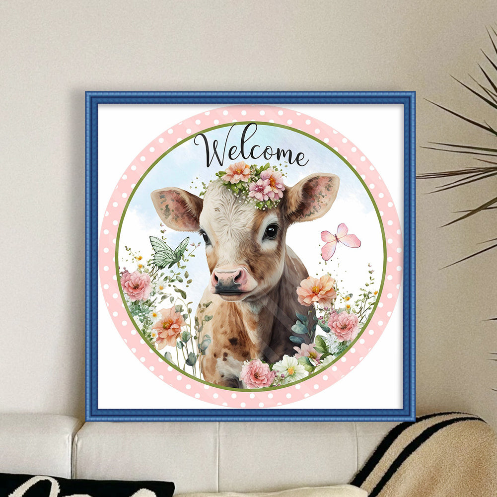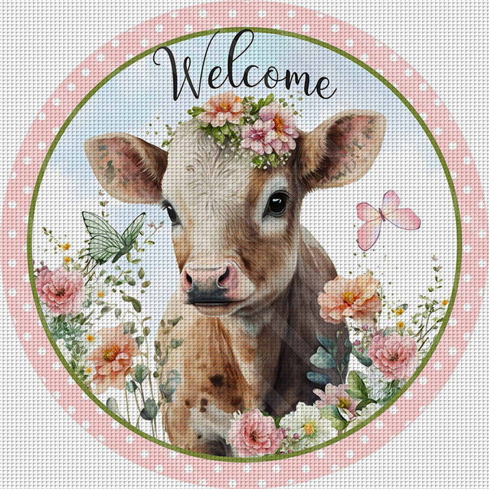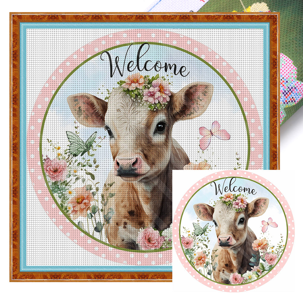 Flowers And Cow - 11CT Stamped Cross Stitch 40*40CM