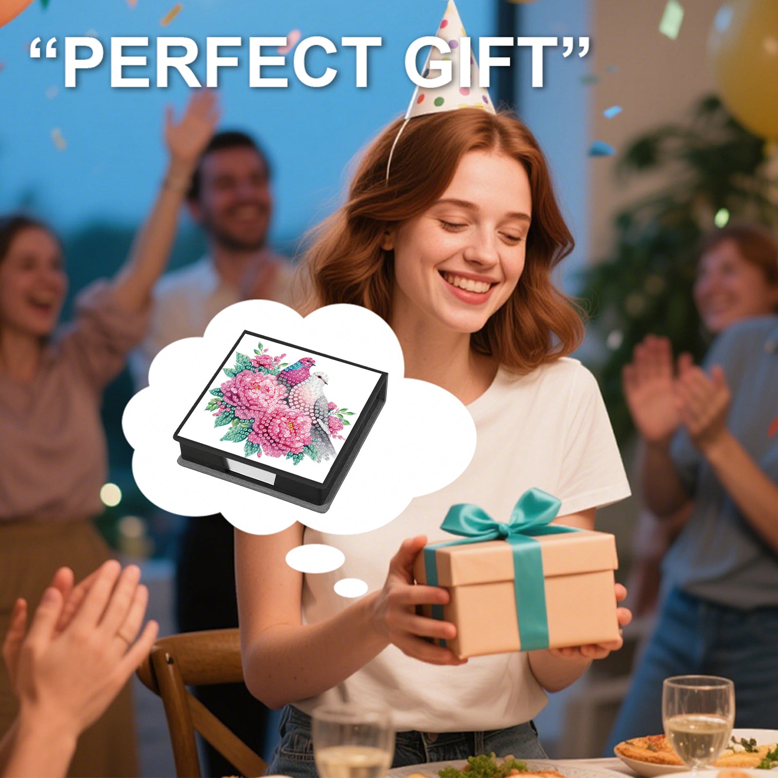 Flowers Birds PU DIY 5D Diamond Painting Note Box w/160 Sheet for Office Home(C)