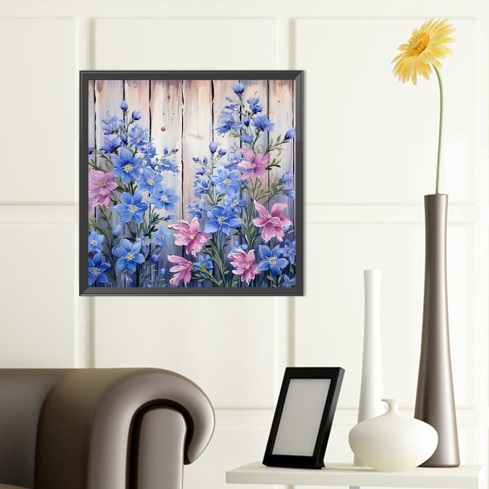 Flowers In Wooden Fence - Full Round Drill Diamond Painting 40*40CM