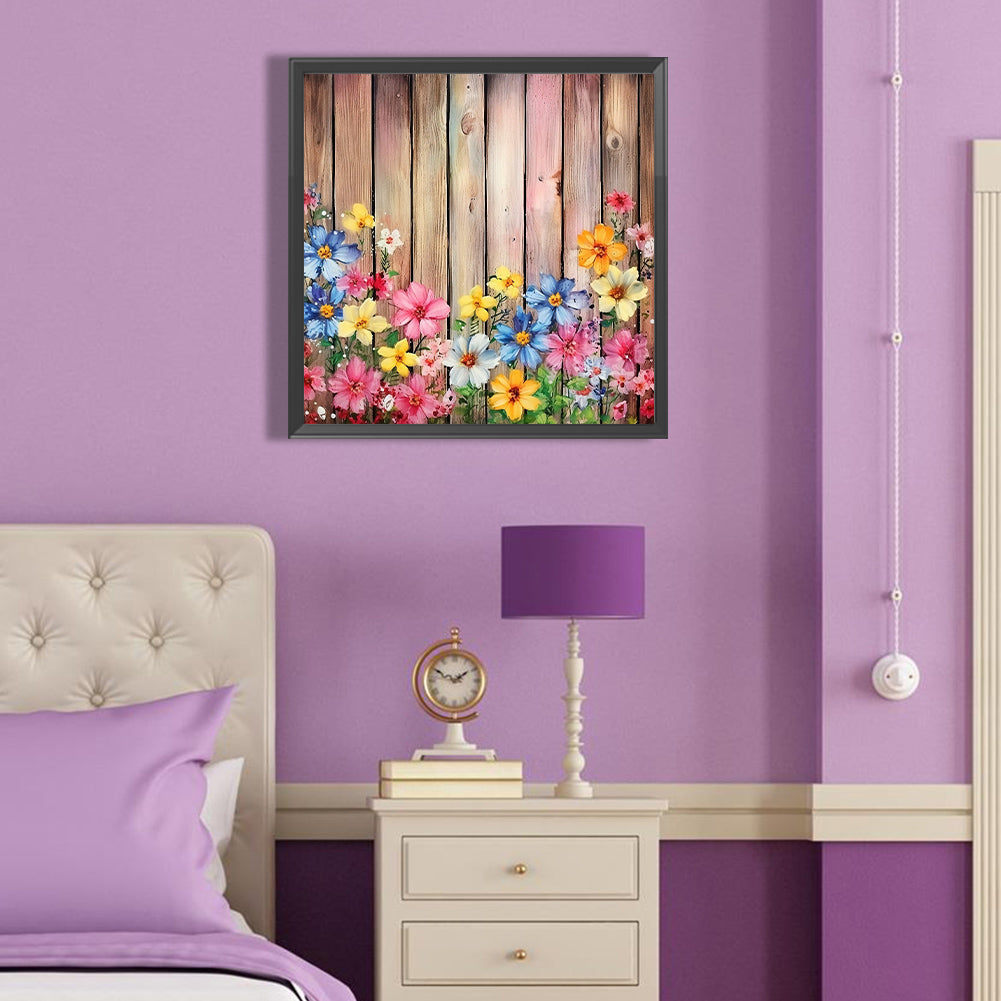 Flowers In Wooden Fence - Full Round Drill Diamond Painting 40*40CM