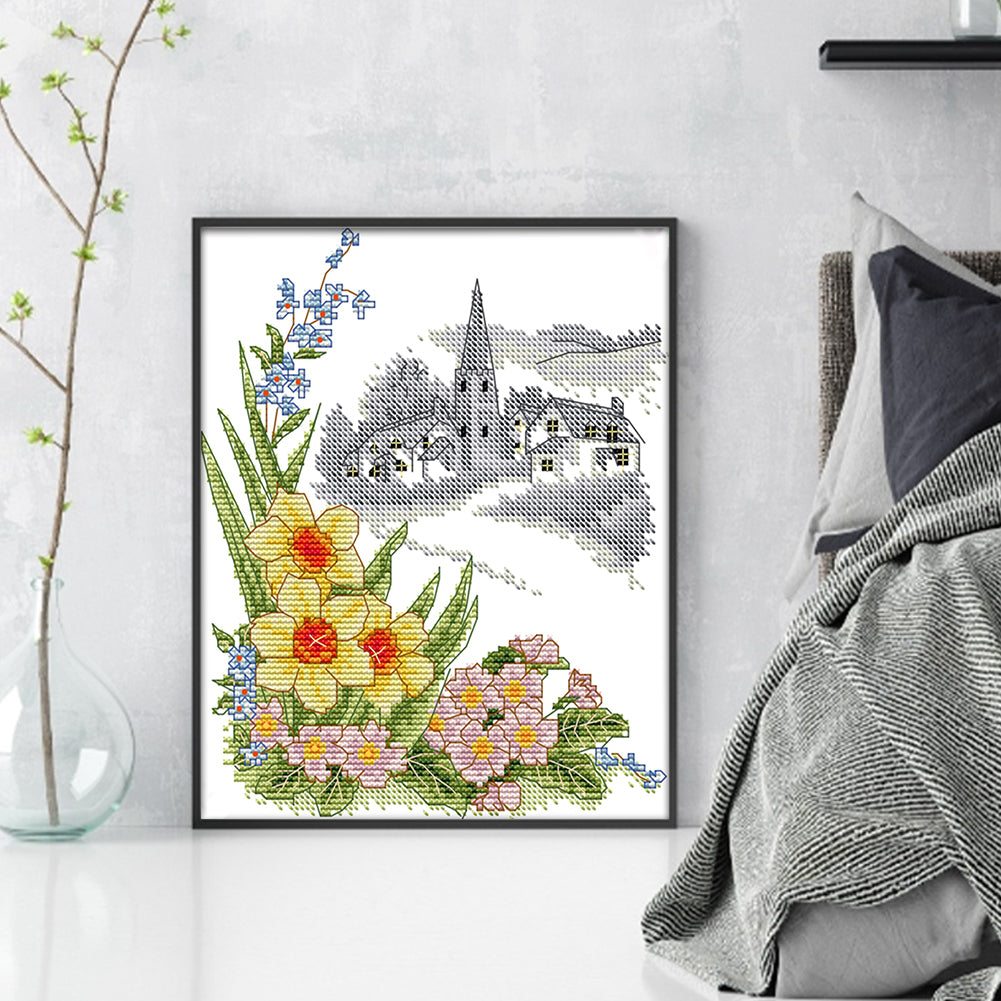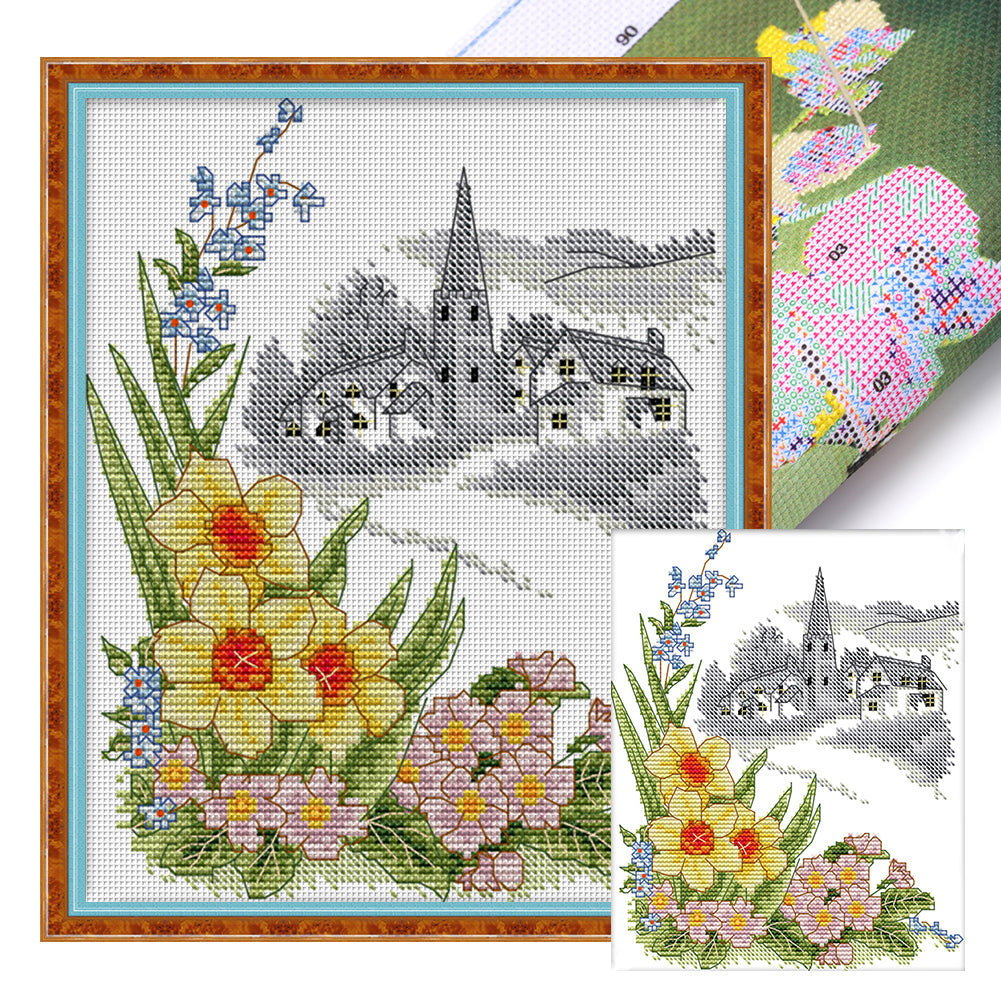 Four Seasons Spring Jasmine - 14CT Stamped Cross Stitch 21*27CM(Joy Sunday)