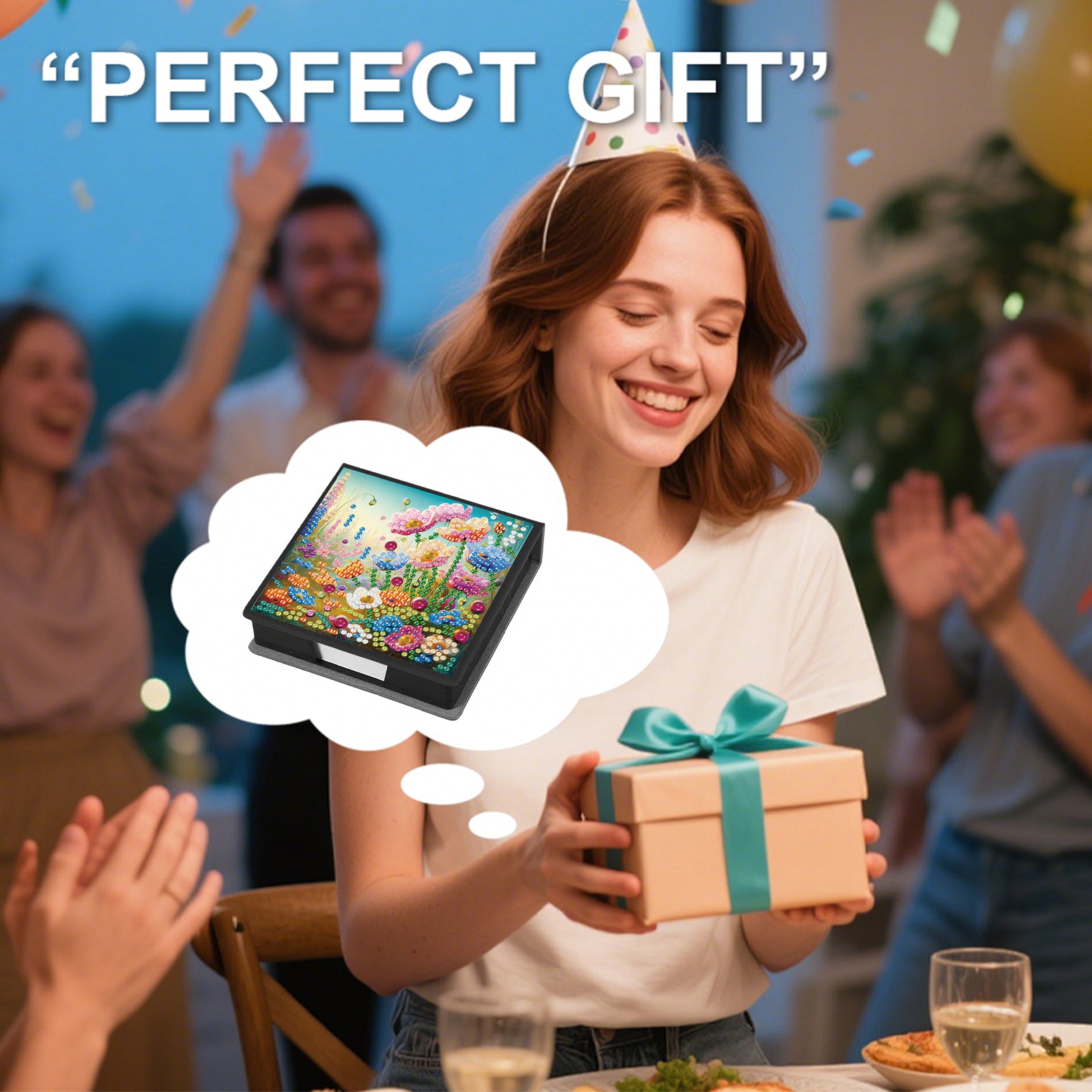Garden PU DIY 5D Diamond Painting Note Box w/160 Sheets for Office Home School