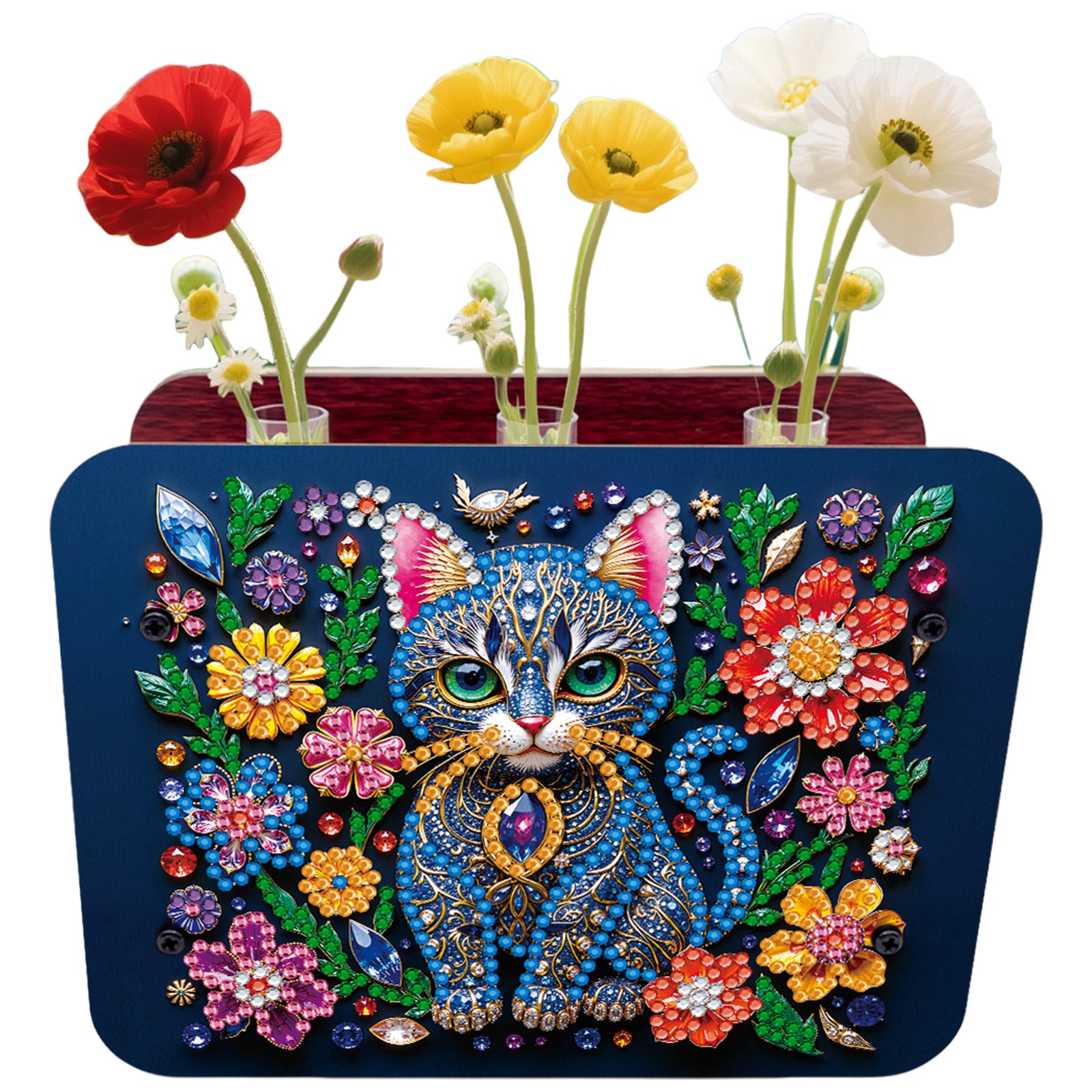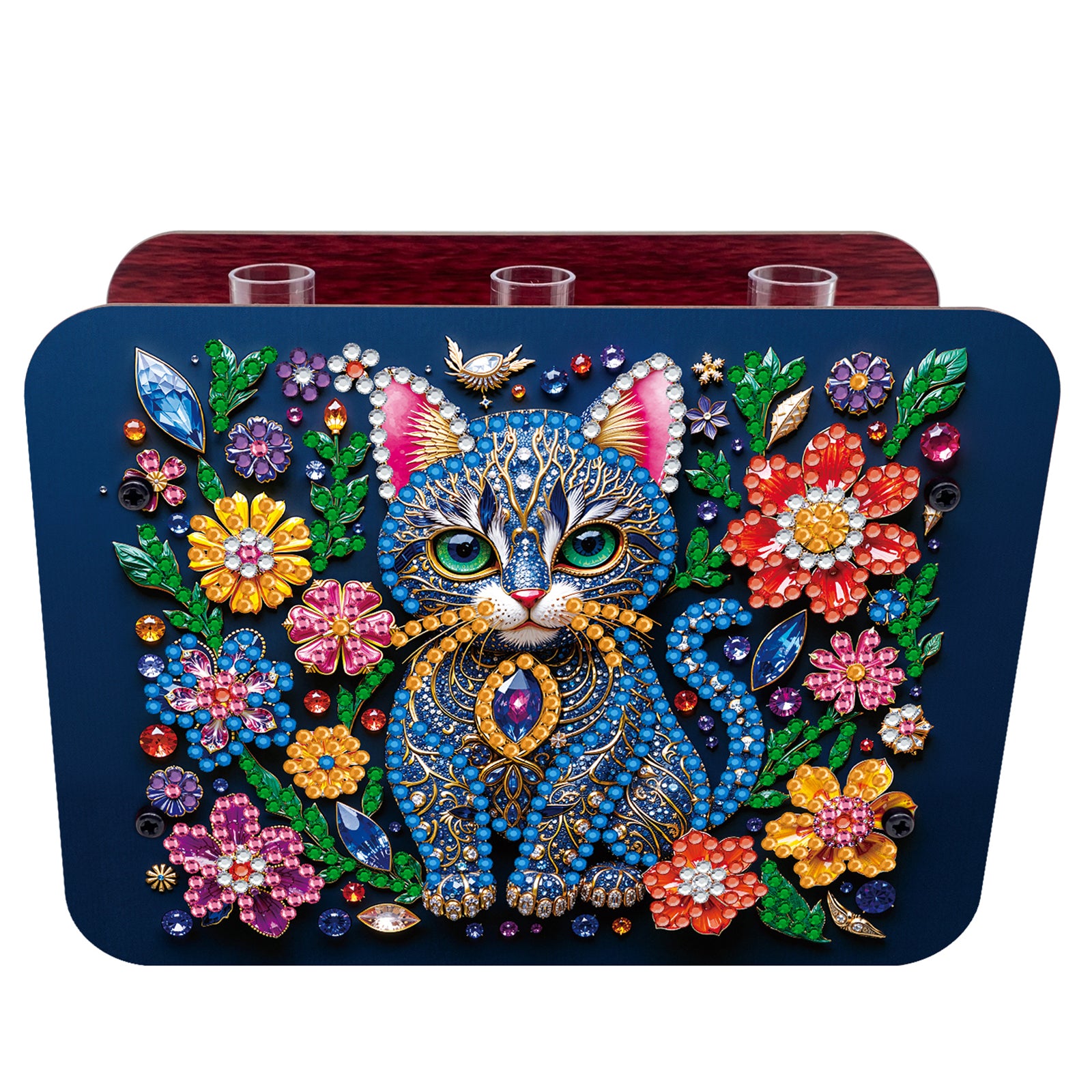 Gem Cat DIY Diamond Painting Wooden Tube Vase for Adults Gift Idea Home Decor