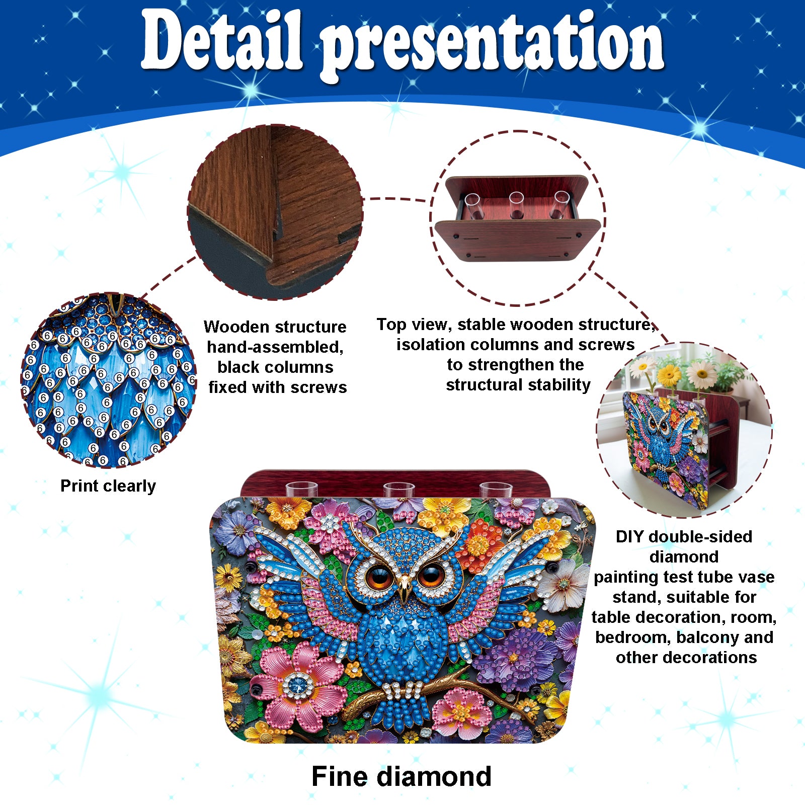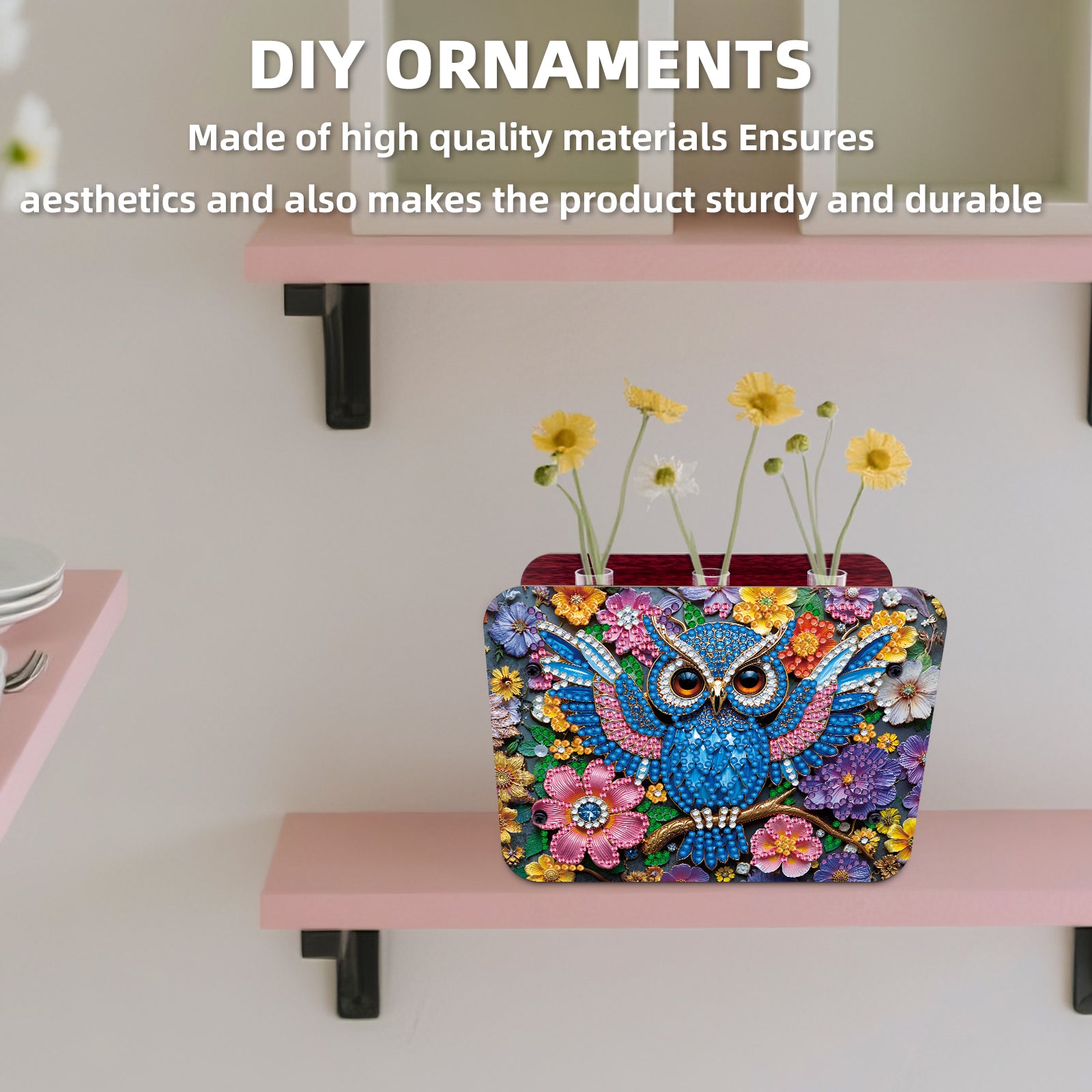 Gem Owl DIY Diamond Painting Wooden Tube Vase for Adults Gift Idea Home Decor