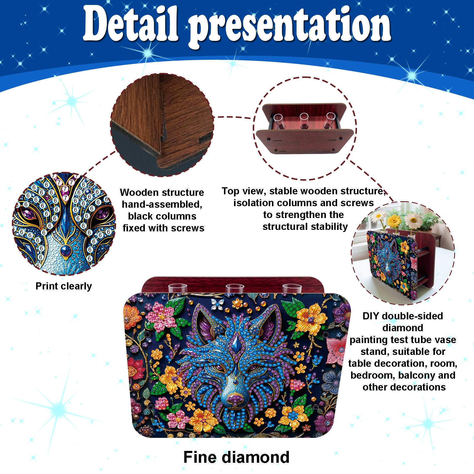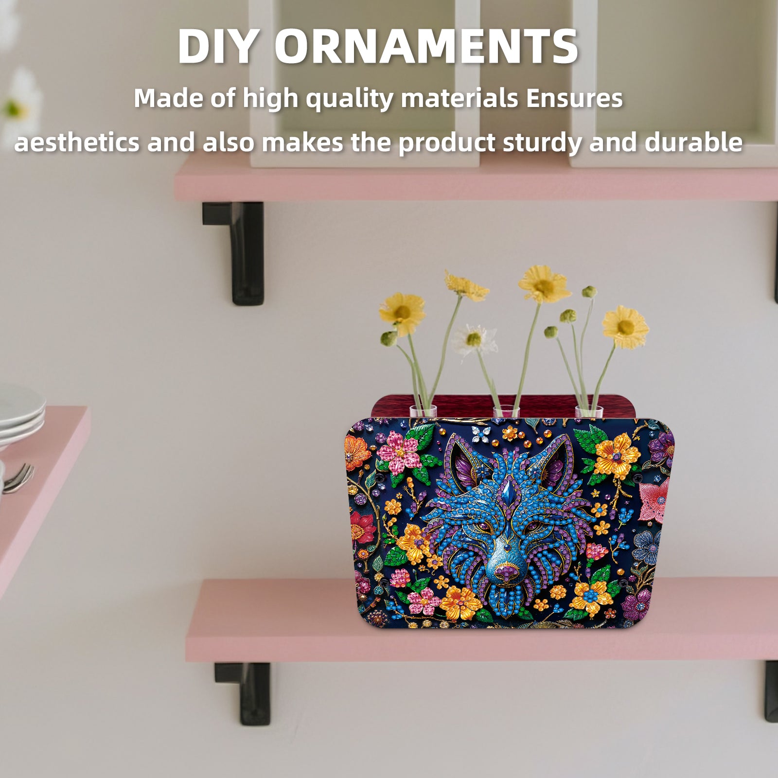 Gem Wolf DIY Diamond Painting Wooden Tube Vase for Adults Gift Idea Home Decor