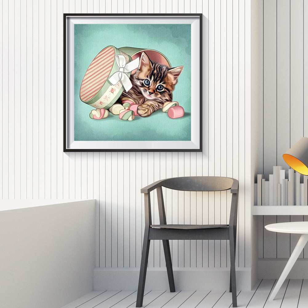 Gift Box Cat - Full Round Drill Diamond Painting 30*30CM