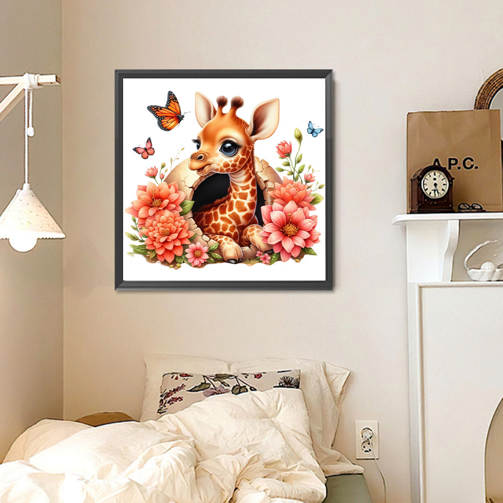Giraffe And Flowers - Full Round Drill Diamond Painting 30*30CM