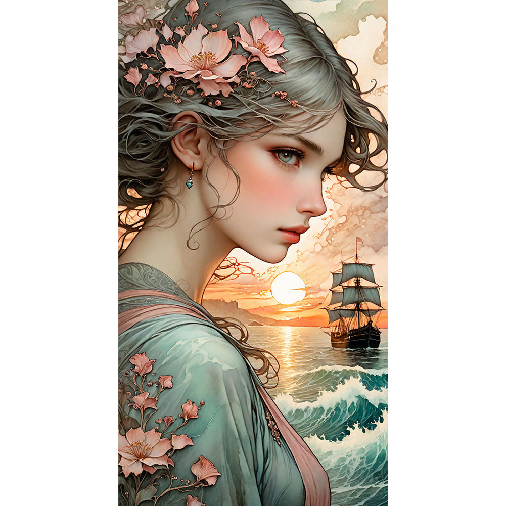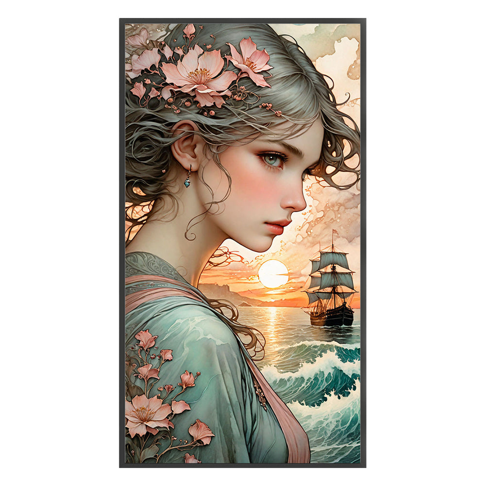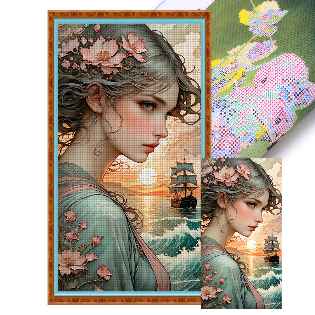 Girl And Sailboat Under Sunset - 11CT Stamped Cross Stitch 40*75CM