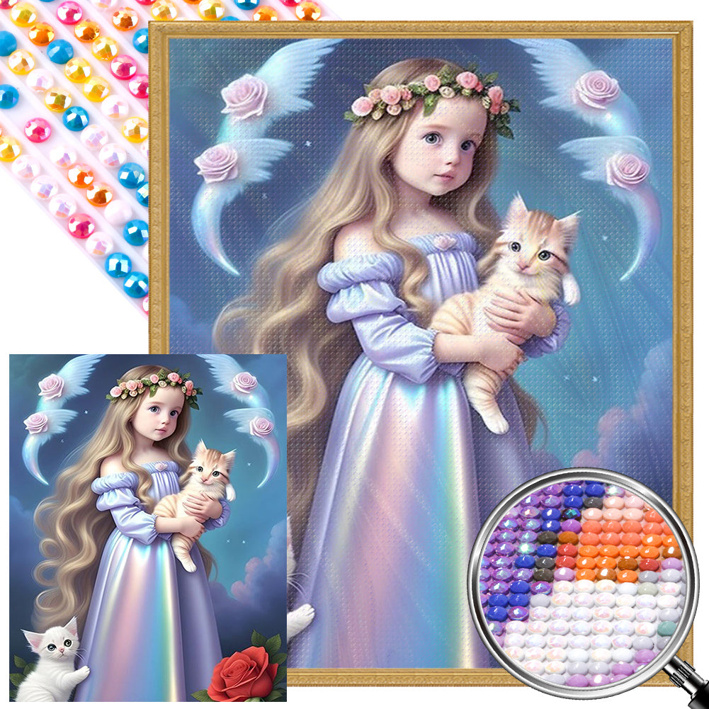 Girl With Cat - AB Round Drill Diamond Painting 40*50CM