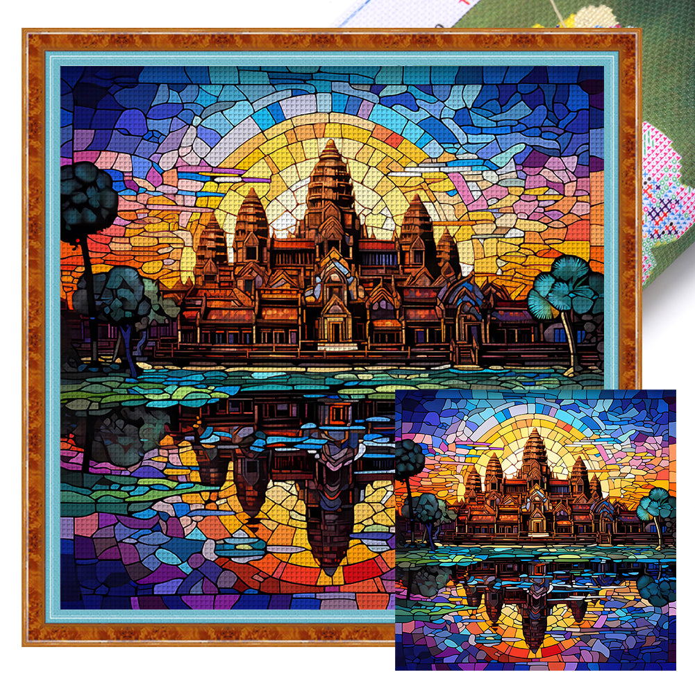 Glass Painting-Angkor Wat, Cambodia - 11CT Stamped Cross Stitch 50*50CM