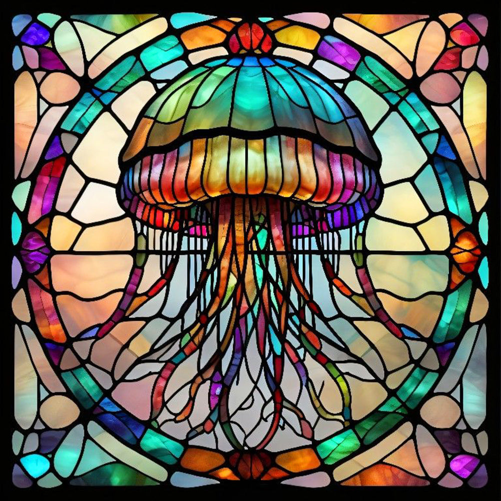 Glass Painting Jellyfish - Full Round Drill Diamond Painting 30*30CM