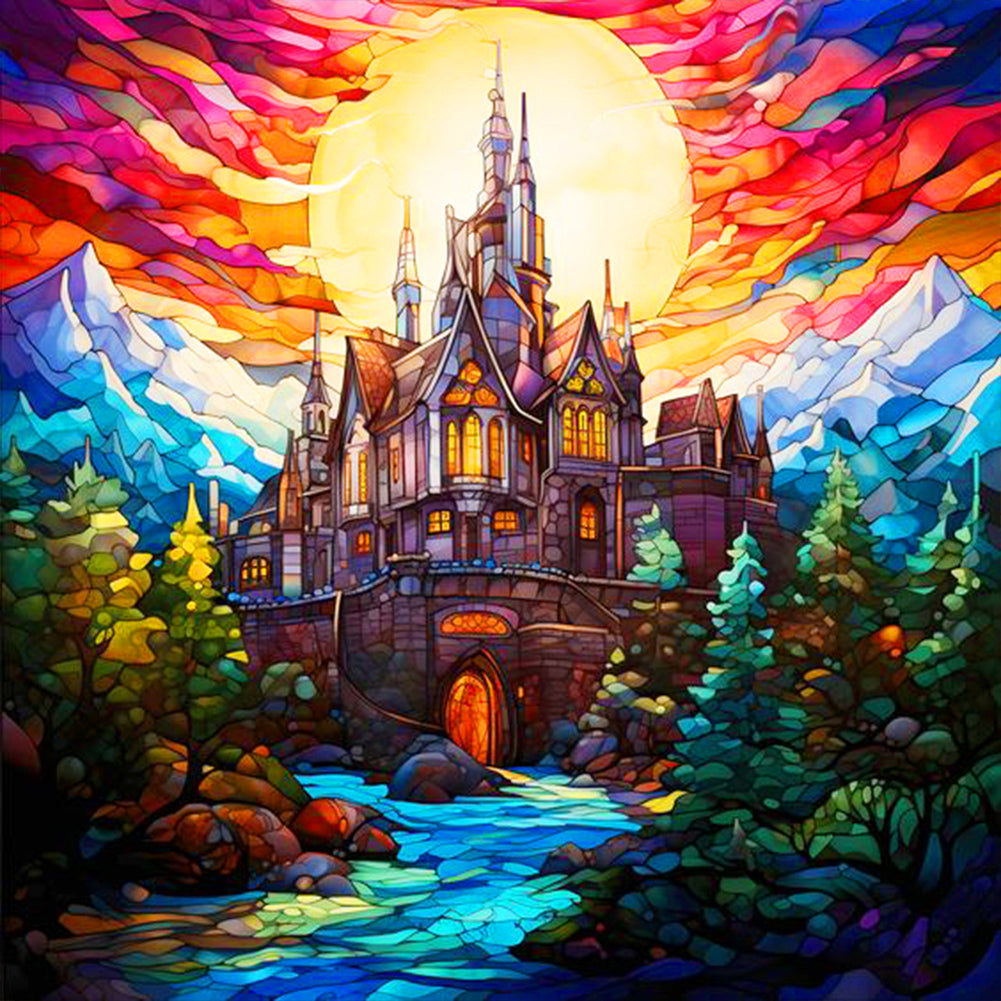 Glass Wind Mountain Castle - Full Round Drill Diamond Painting 30*30CM