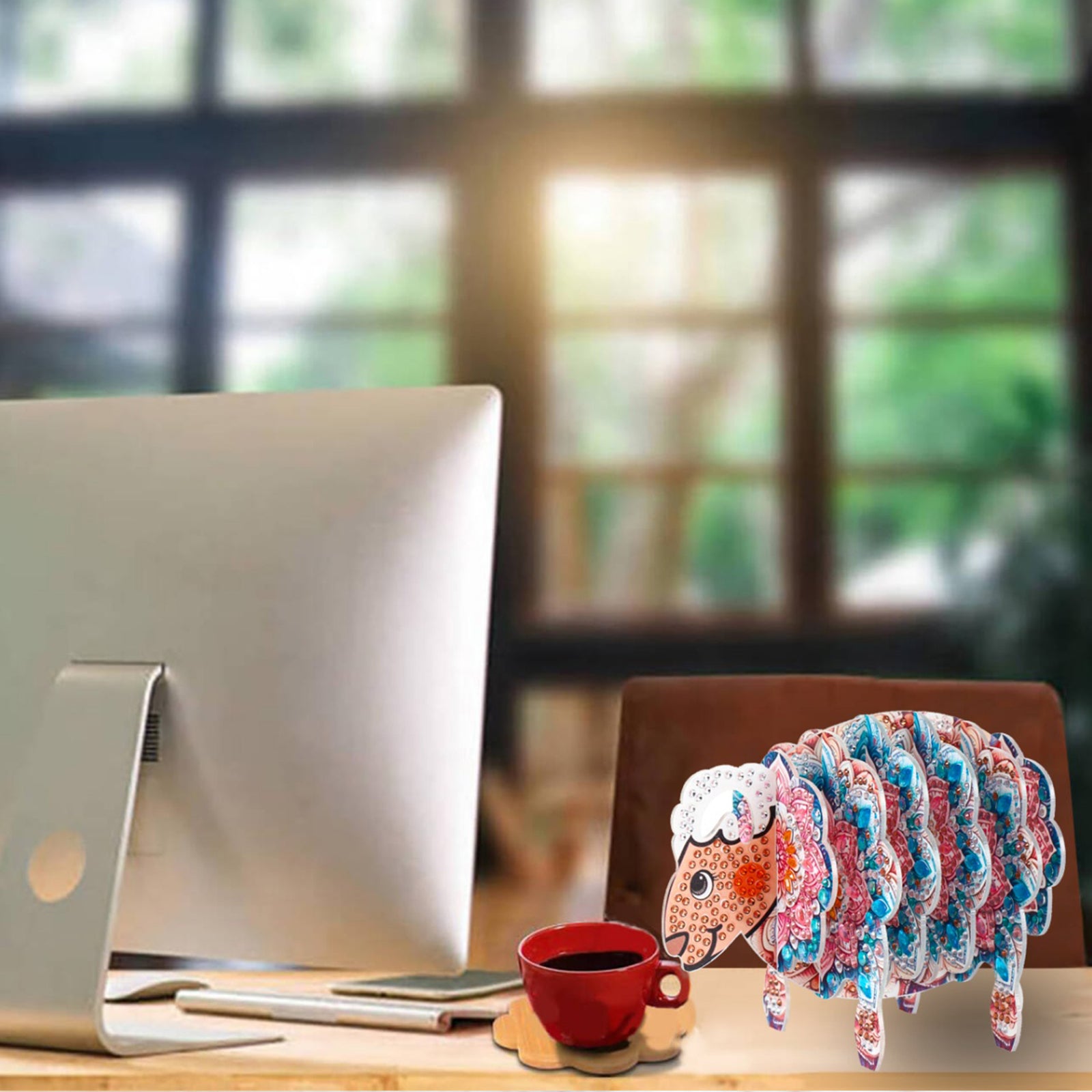 Goat 5D DIY Animal Pattern Diamond Painting Coasters Kits with Holder for Home