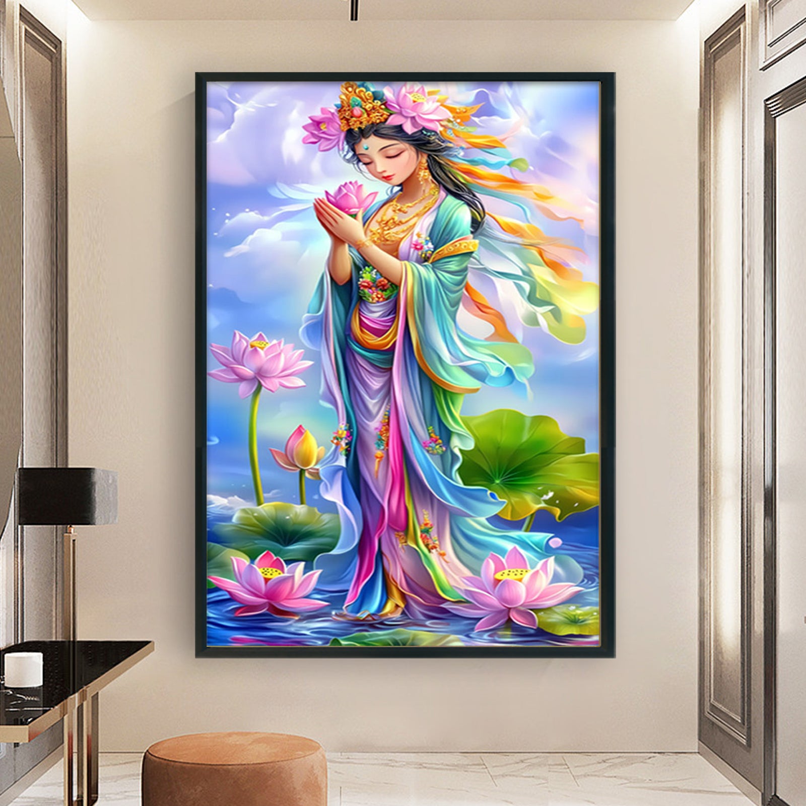 Golden-Bodied Guanyin Bodhisattva With Pink Lotus - 11CT Stamped Cross Stitch 50*75CM(Mona Lisa Brand)