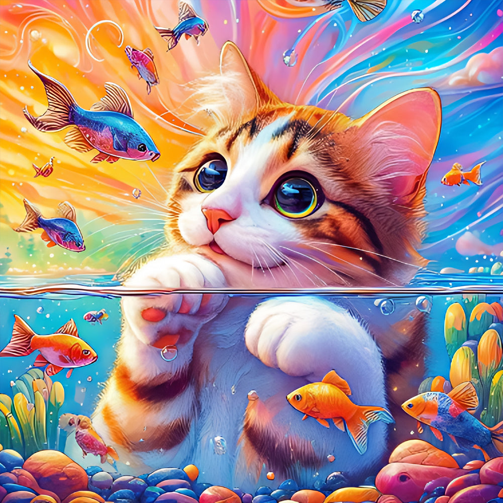 Goldfish And Little Orange Cat - Full Round Drill Diamond Painting 40*40CM