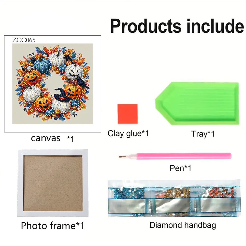 Halloween Pumpkin Wreath - Special Shaped Drill Diamond Painting 18*18CM