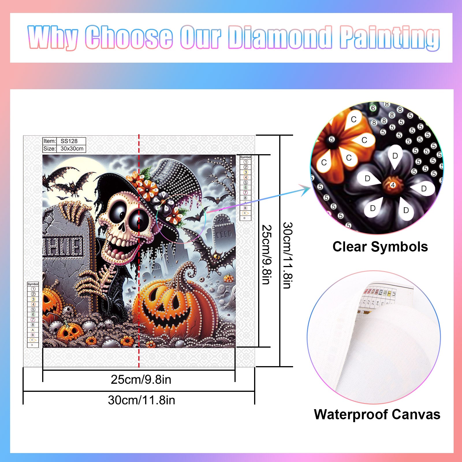 Halloween Skull Pumpkin - Special Shaped Drill Diamond Painting 30*30CM