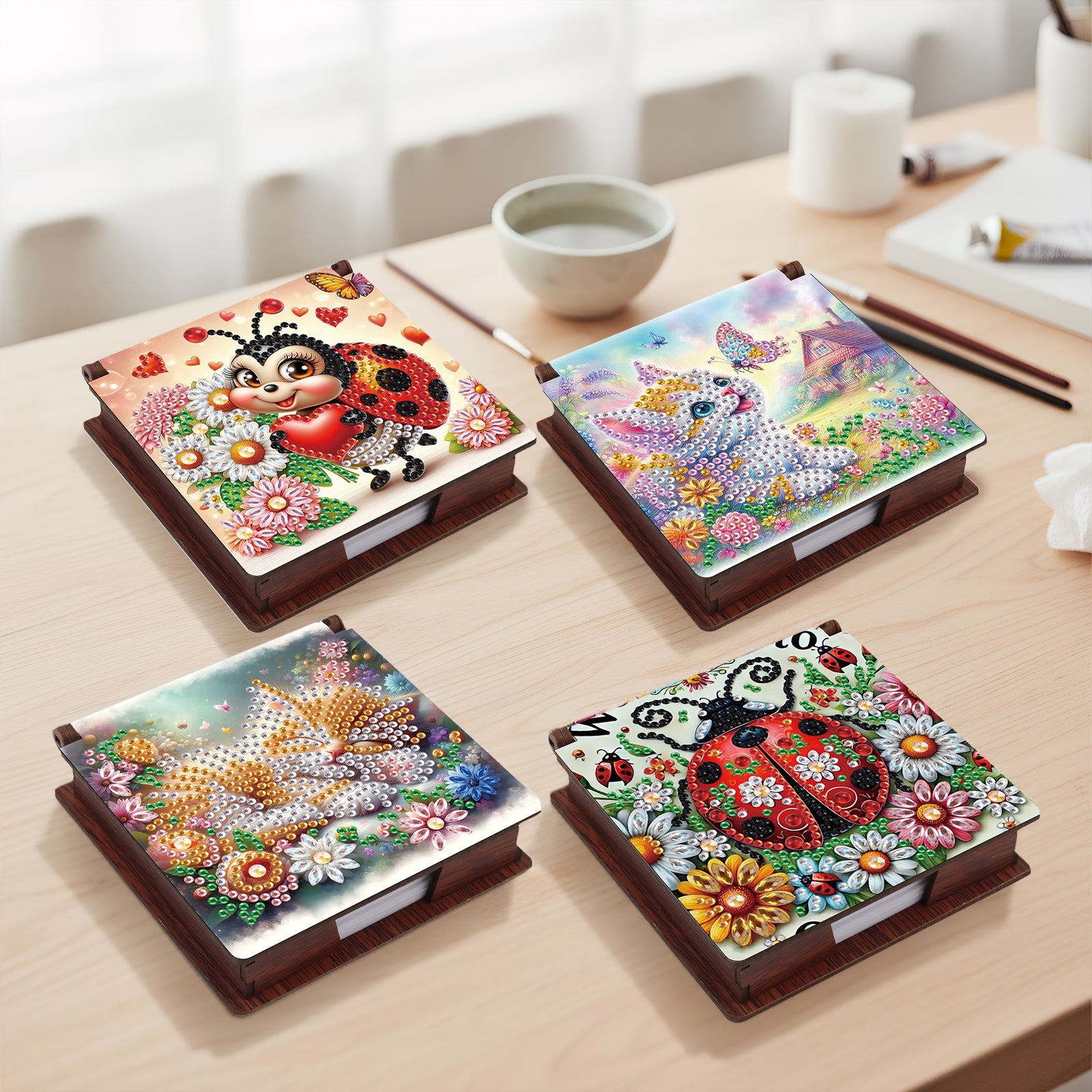 Insects and Animals Wooden DIY 5D Diamond Painting Note Box 640 Notepads Office