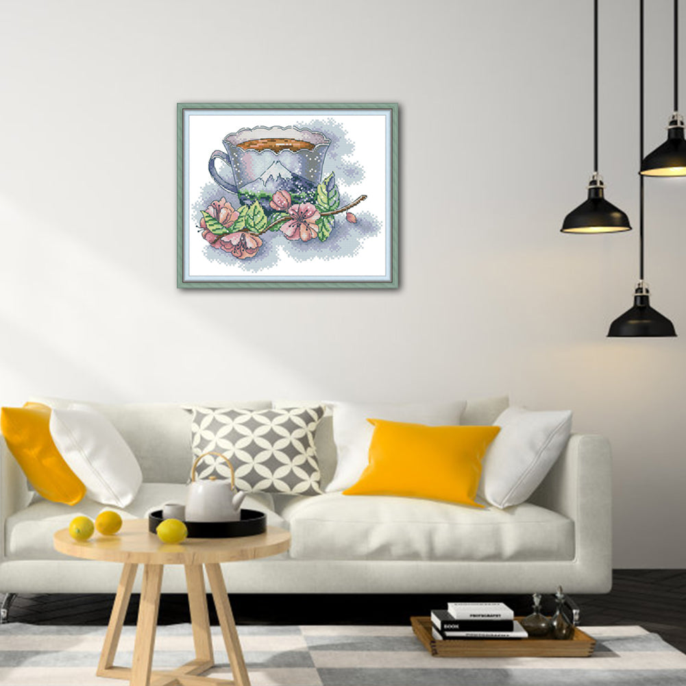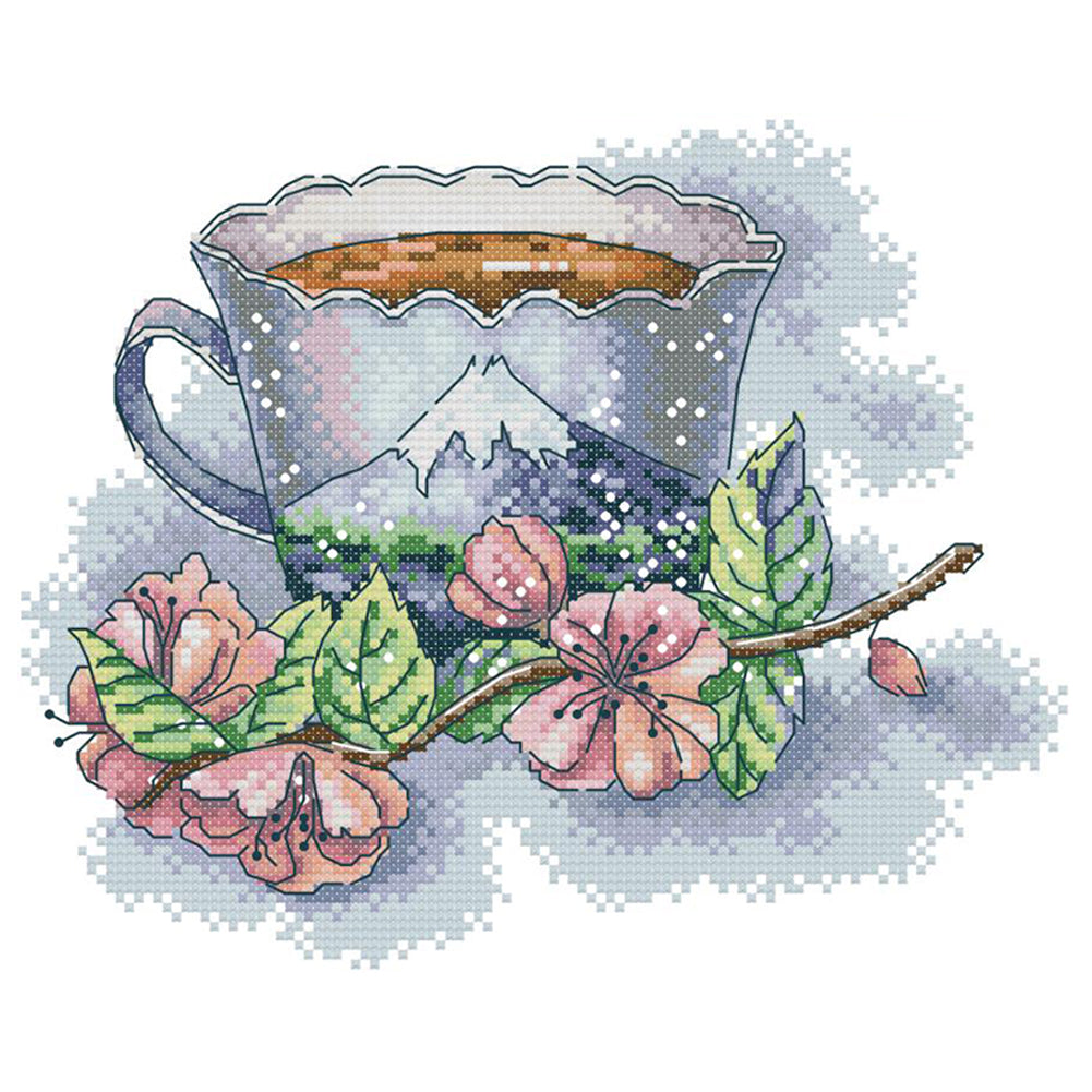 Japanese Teacup - 14CT Stamped Cross Stitch 28*21CM