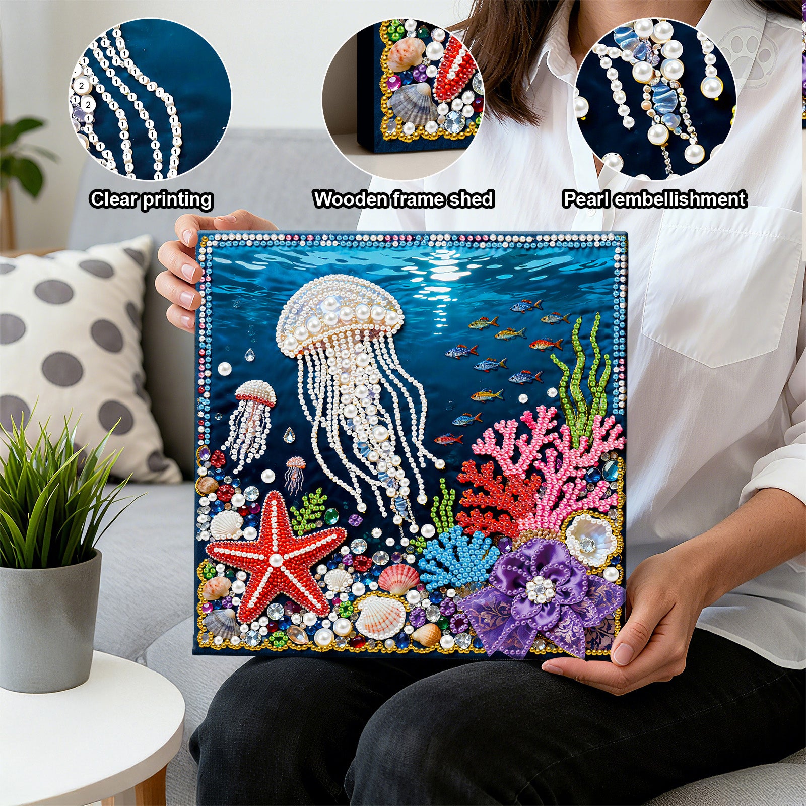Jellyfish - DIY Pearl Gem Art Diamond Painting Kits With Framefor Home Decor -25x25cm