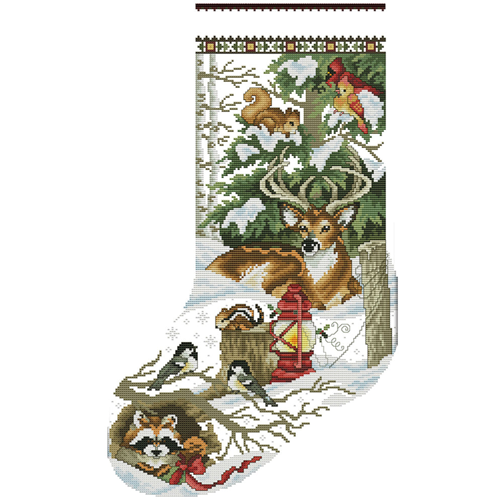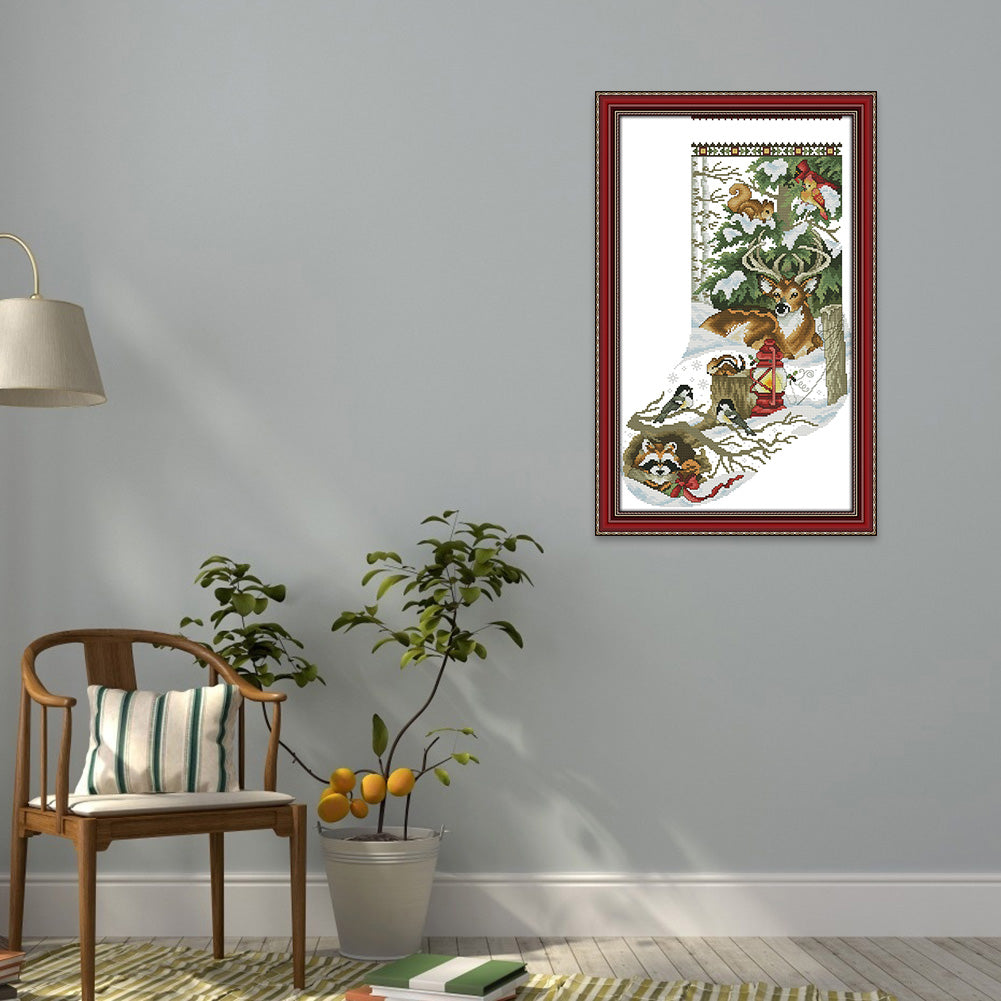 Jungle Xmas Socks - 14CT Stamped Cross Stitch 34*53CM