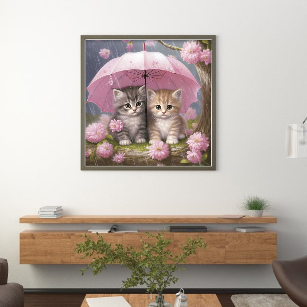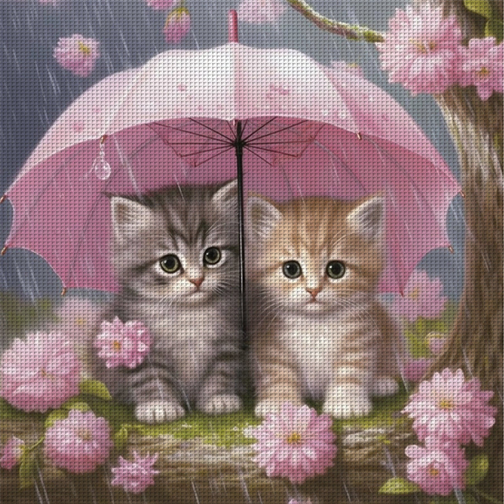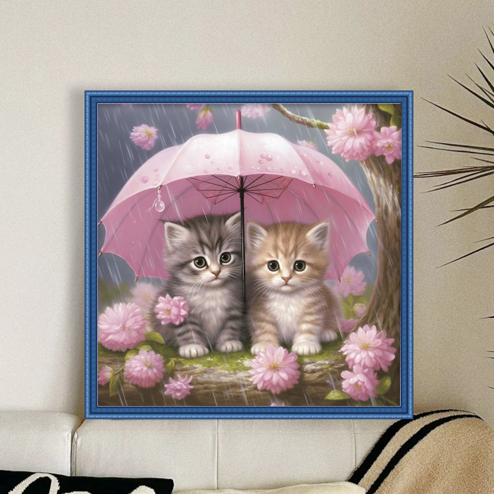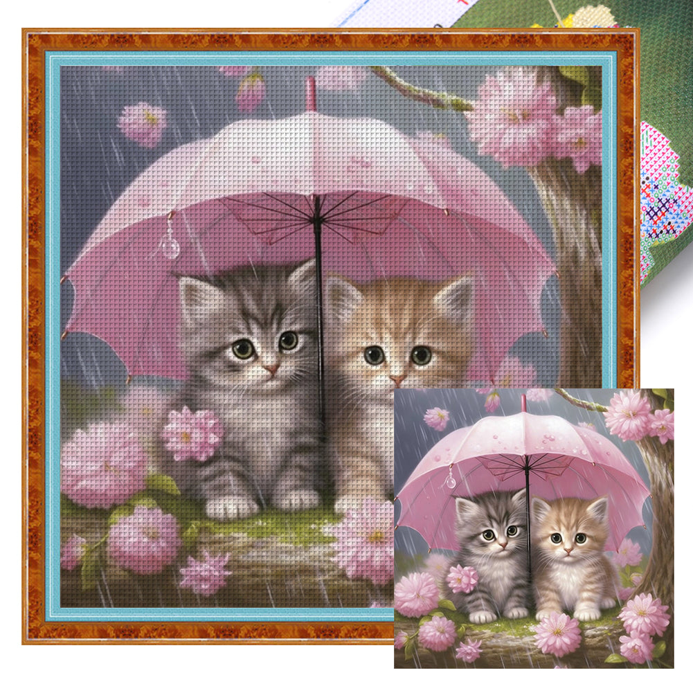 Kitten Holding Umbrella With Flowers - 11CT Stamped Cross Stitch 40*40CM