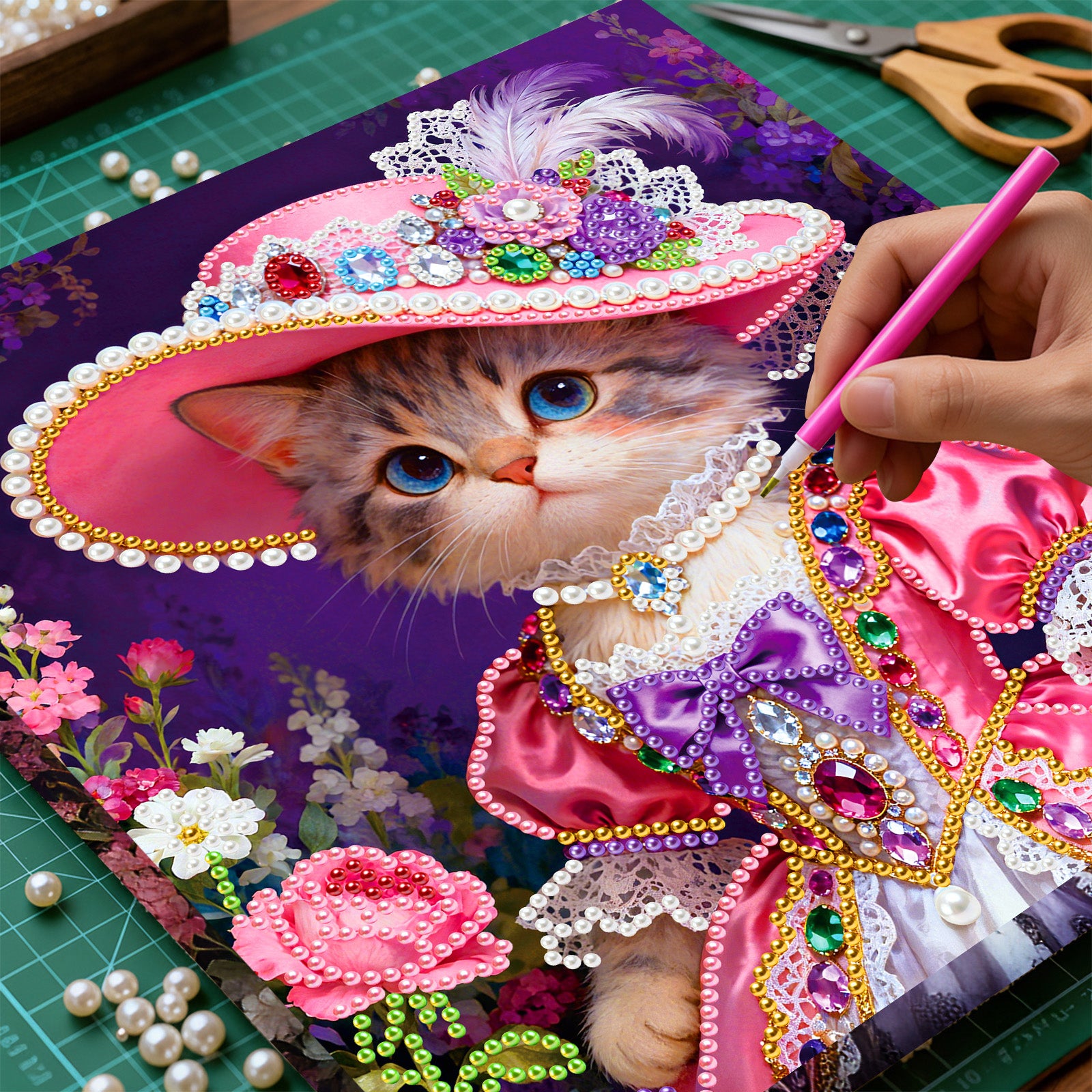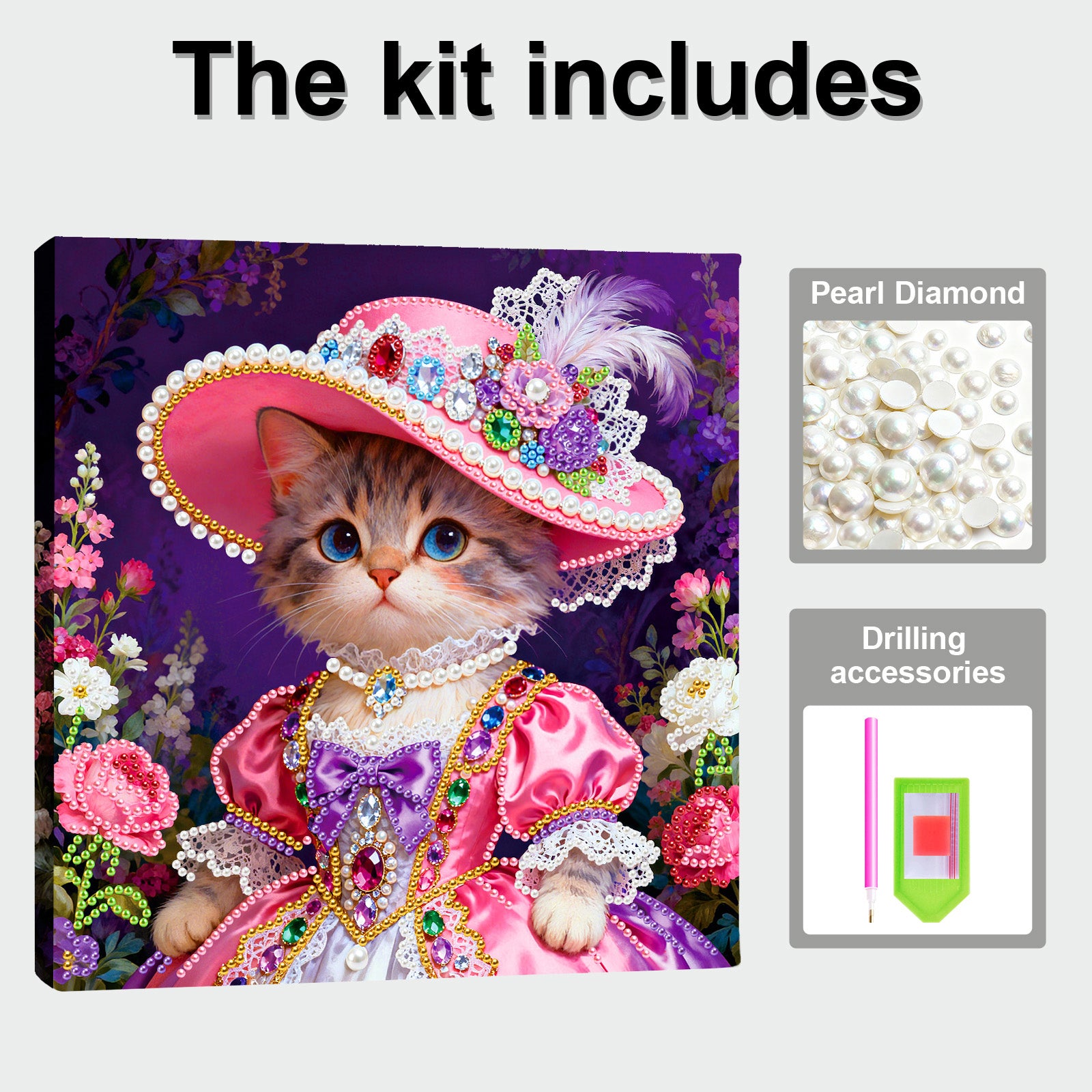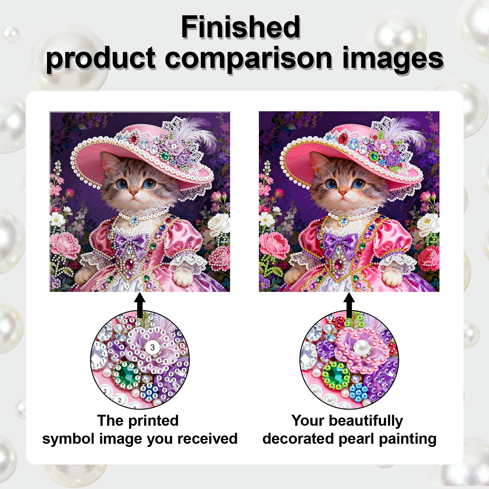 Kitty - DIY Pearl Gem Art Diamond Painting Kits With Framefor Home Decor -25x25cm