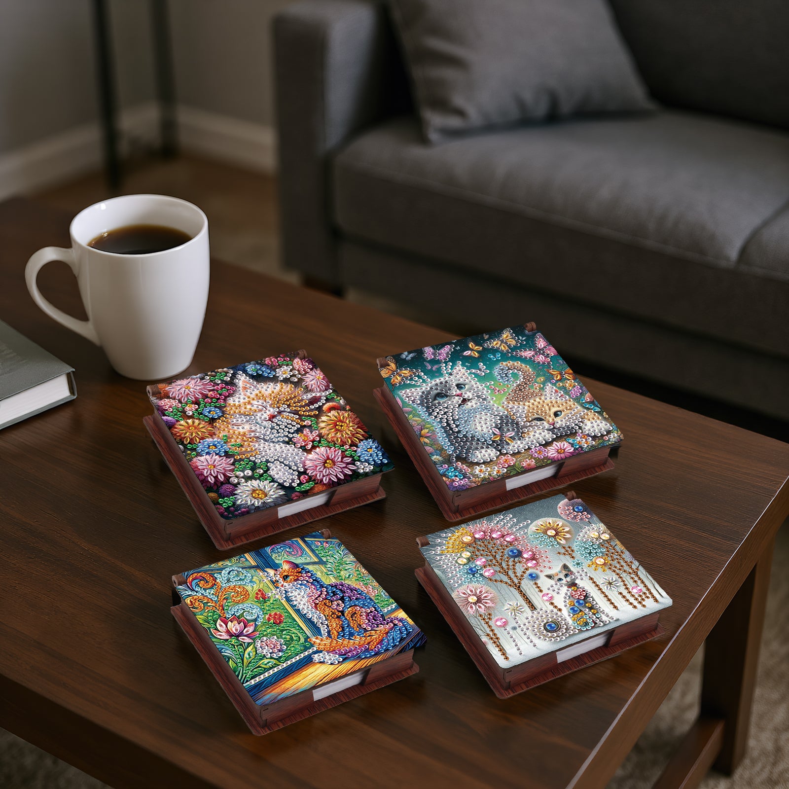 Kitty Wooden DIY 5D Diamond Painting Note Box 640 Notepads Office Home
