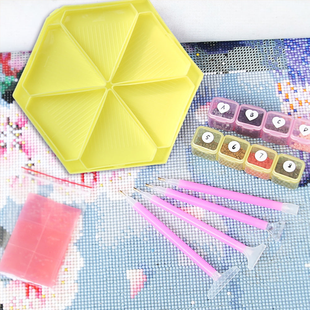 Large Capacity DIY Hexagonal Diamond Painting Tray Kit with Spoon Brush (Yellow)