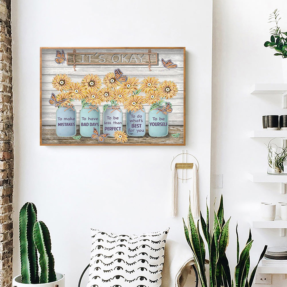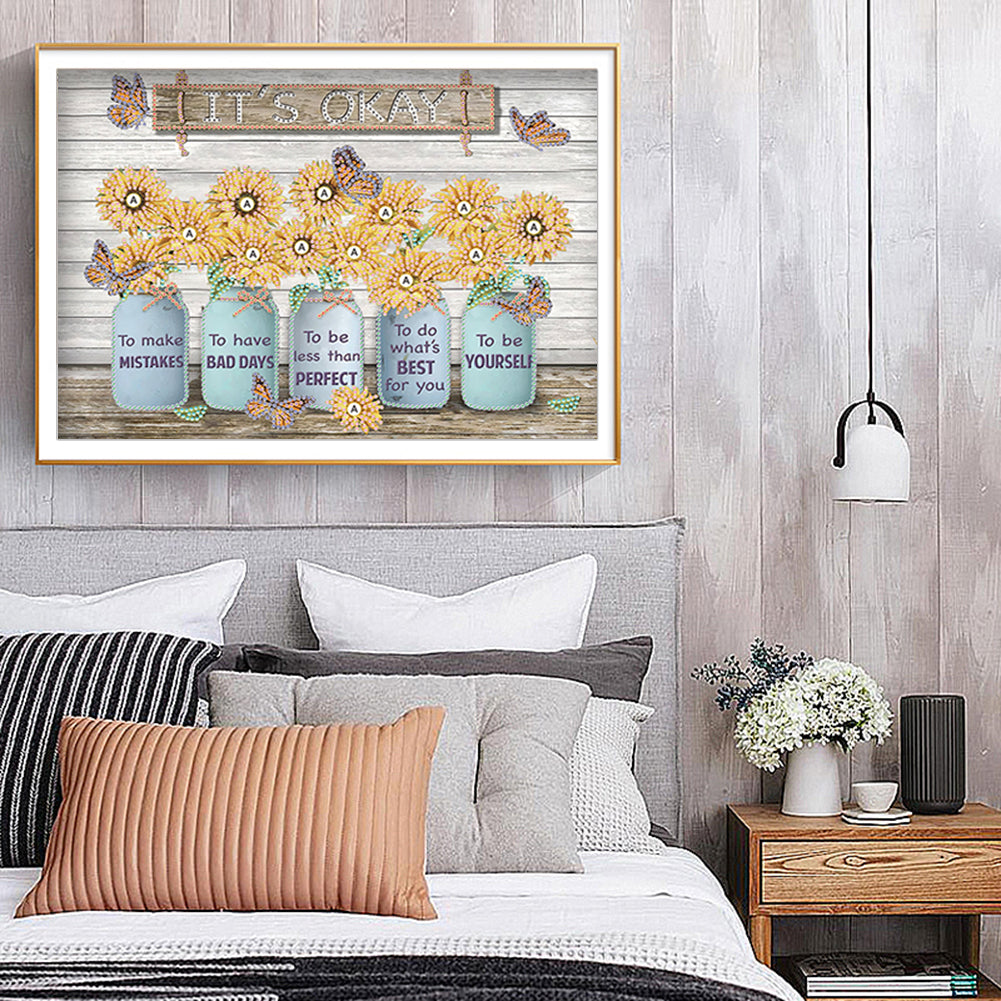 Sunflower Butterfly Paper Painting - Special Shaped Drill Diamond Painting 30*30CM