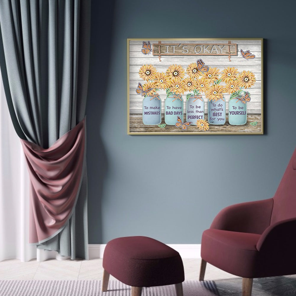 Letter Flower - Special Shaped Drill Diamond Painting 40*30CM