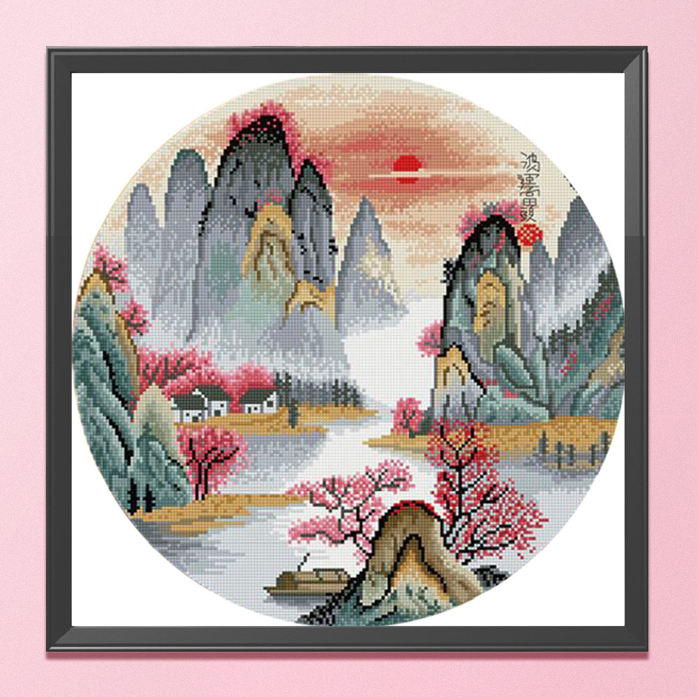 Lijiang River Landscape - 11CT Stamped Cross Stitch 50*50CM