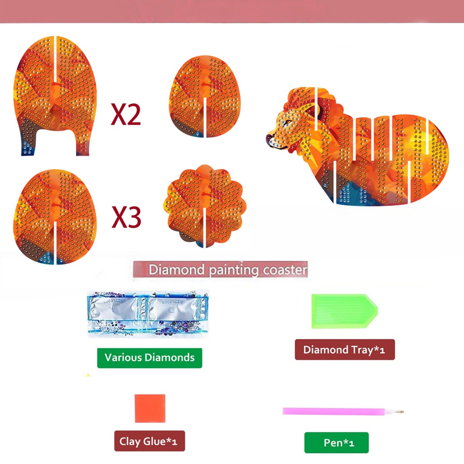 Lion 5D DIY Animal Pattern Diamond Painting Coasters Kits with Holder for Home