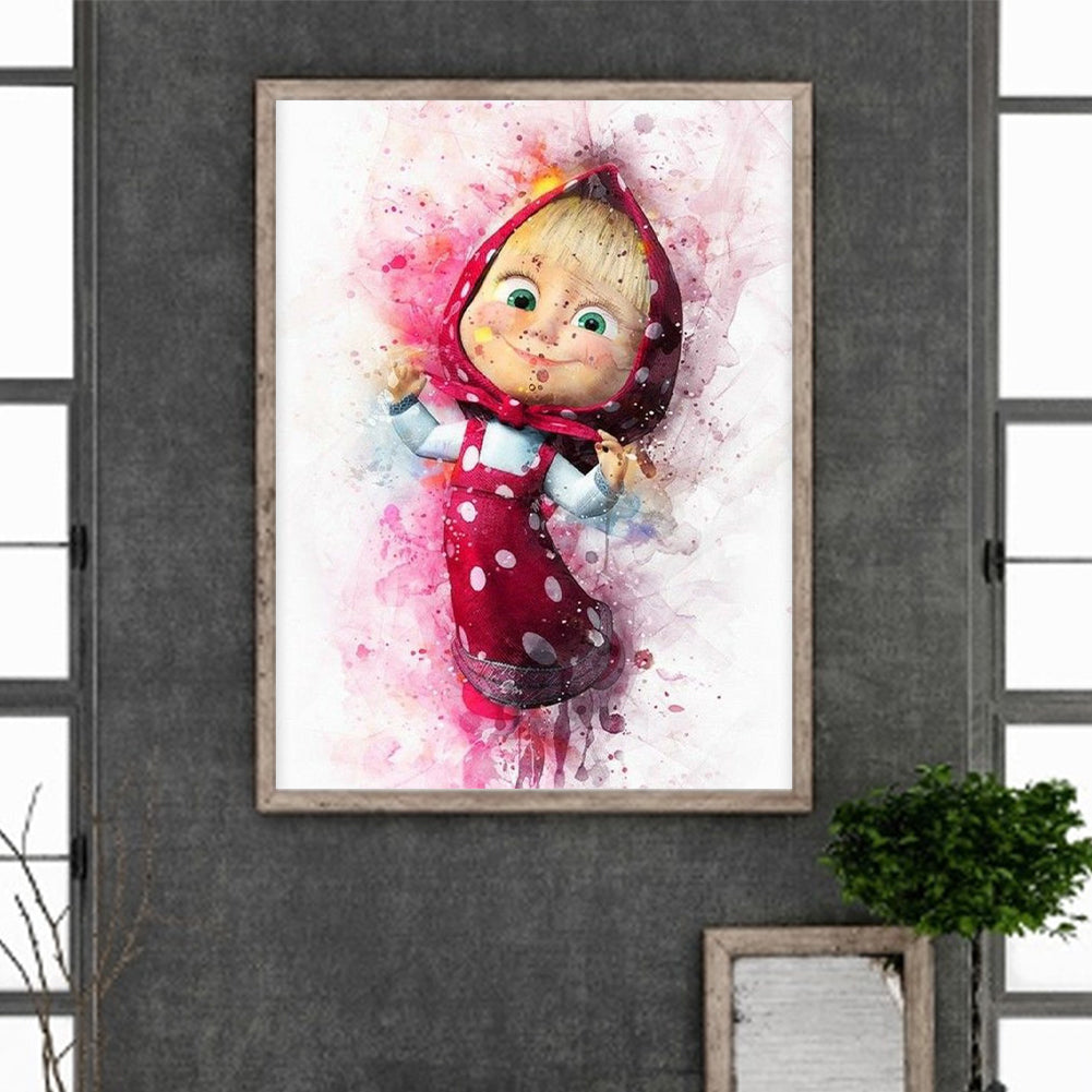 Masha And The Bear Watercolor Ink Painting - Full Round Drill Diamond Painting 30*40CM