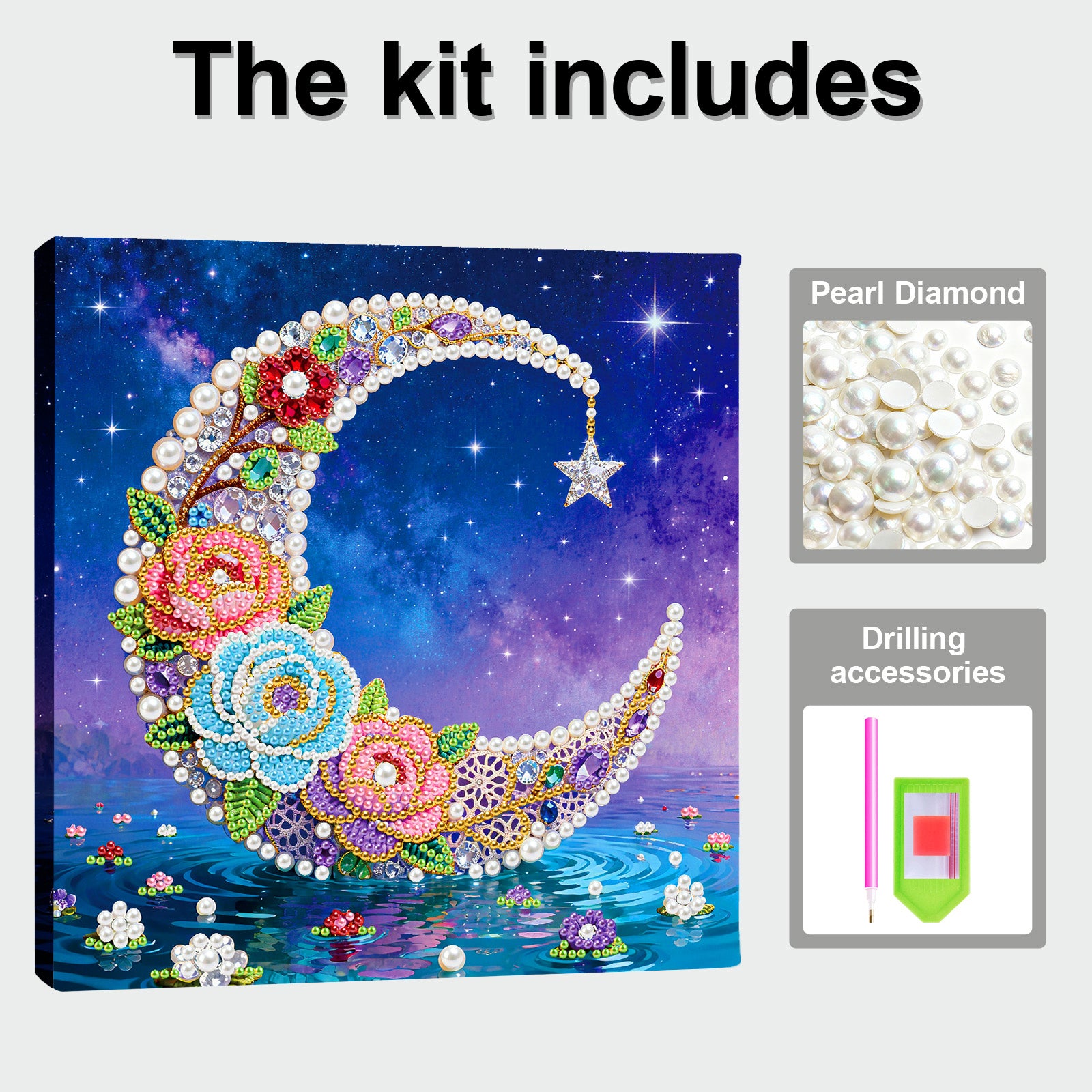 Moon - DIY Pearl Gem Art Diamond Painting Kits With Framefor Home Decor -25x25cm