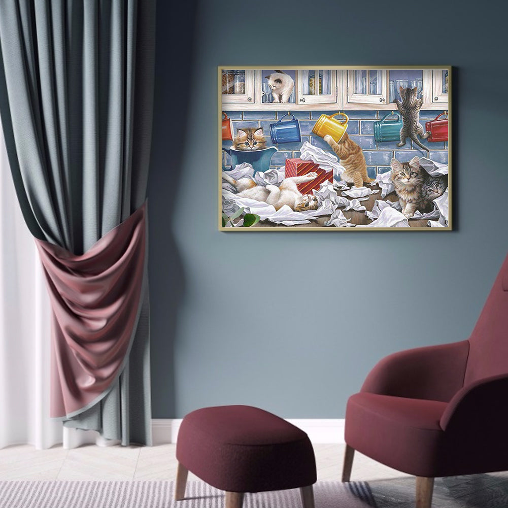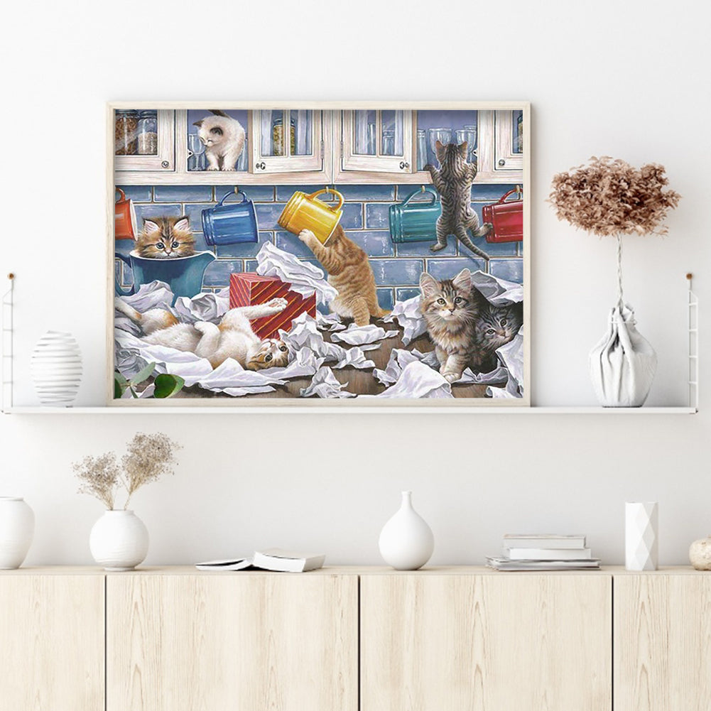 Naughty Cat - Full Round Drill Diamond Painting 40*30CM
