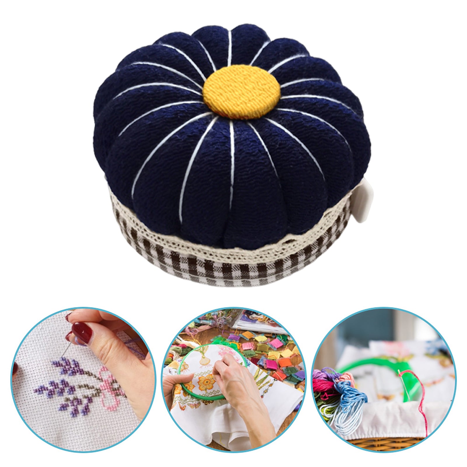 Needlework Pin Insert Cushion w/Measuring Tape Pumpkin Needle Holder (Dark Blue)