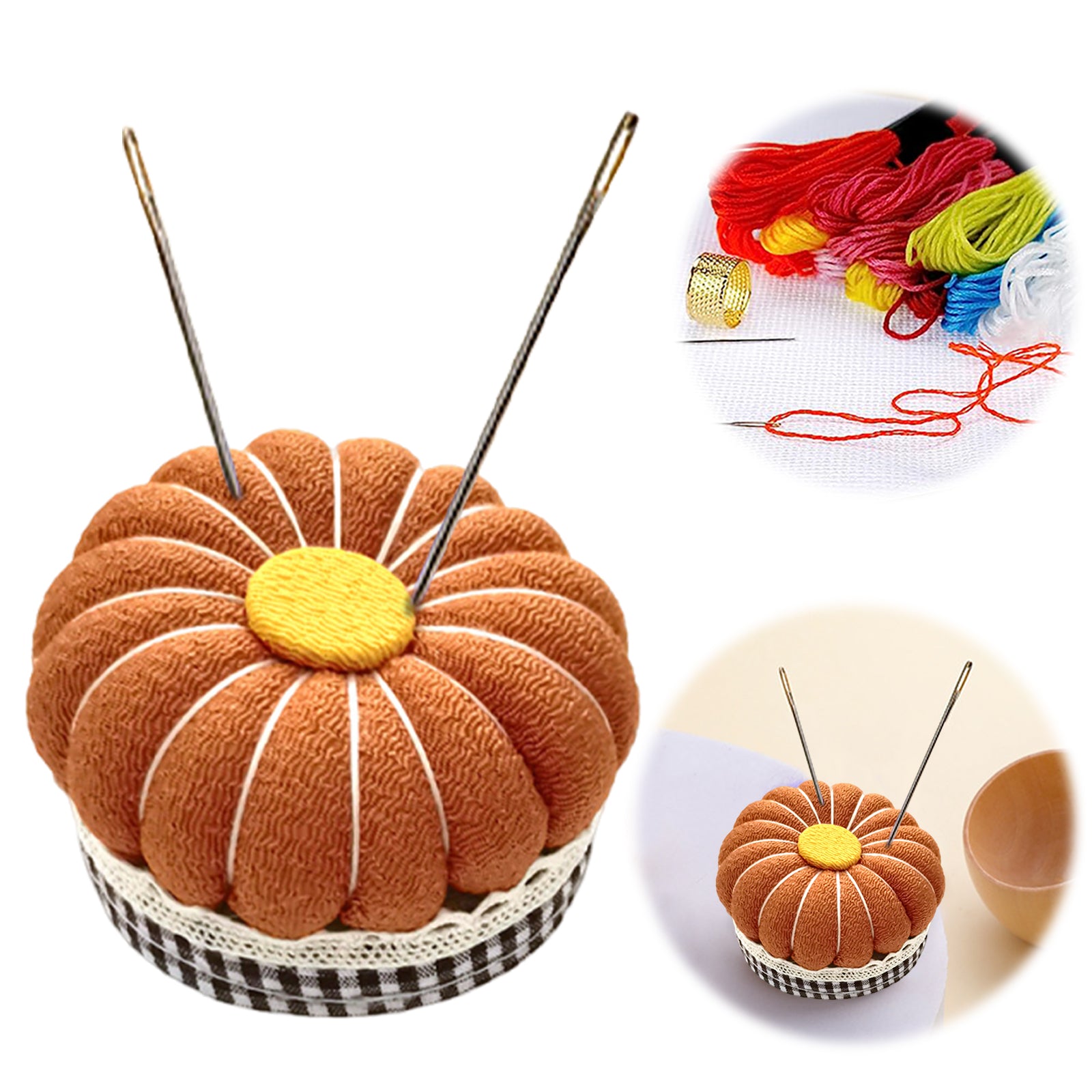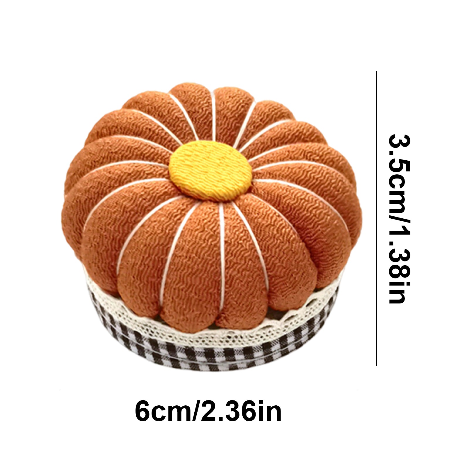 Needlework Pin Insert Cushion with Measuring Tape Pumpkin Needle Holder (Orange)