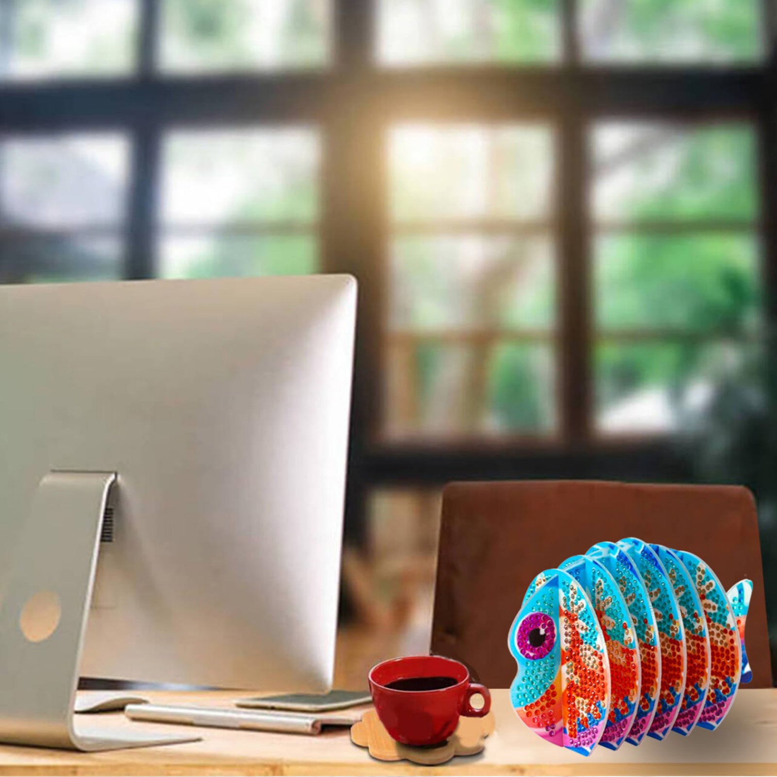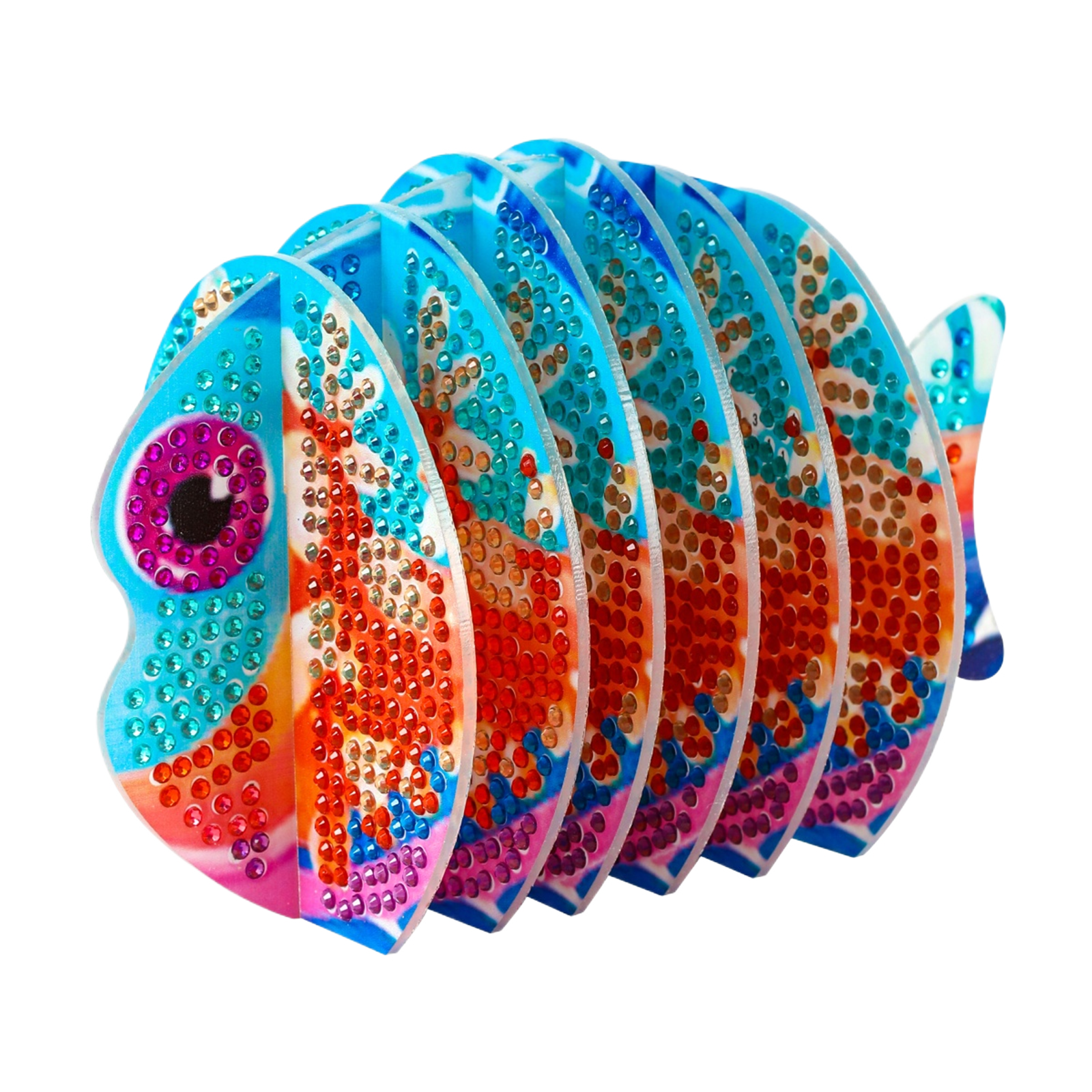 Orange Fish 5D DIY Animal Pattern Diamond Painting Coasters Kits with Holder