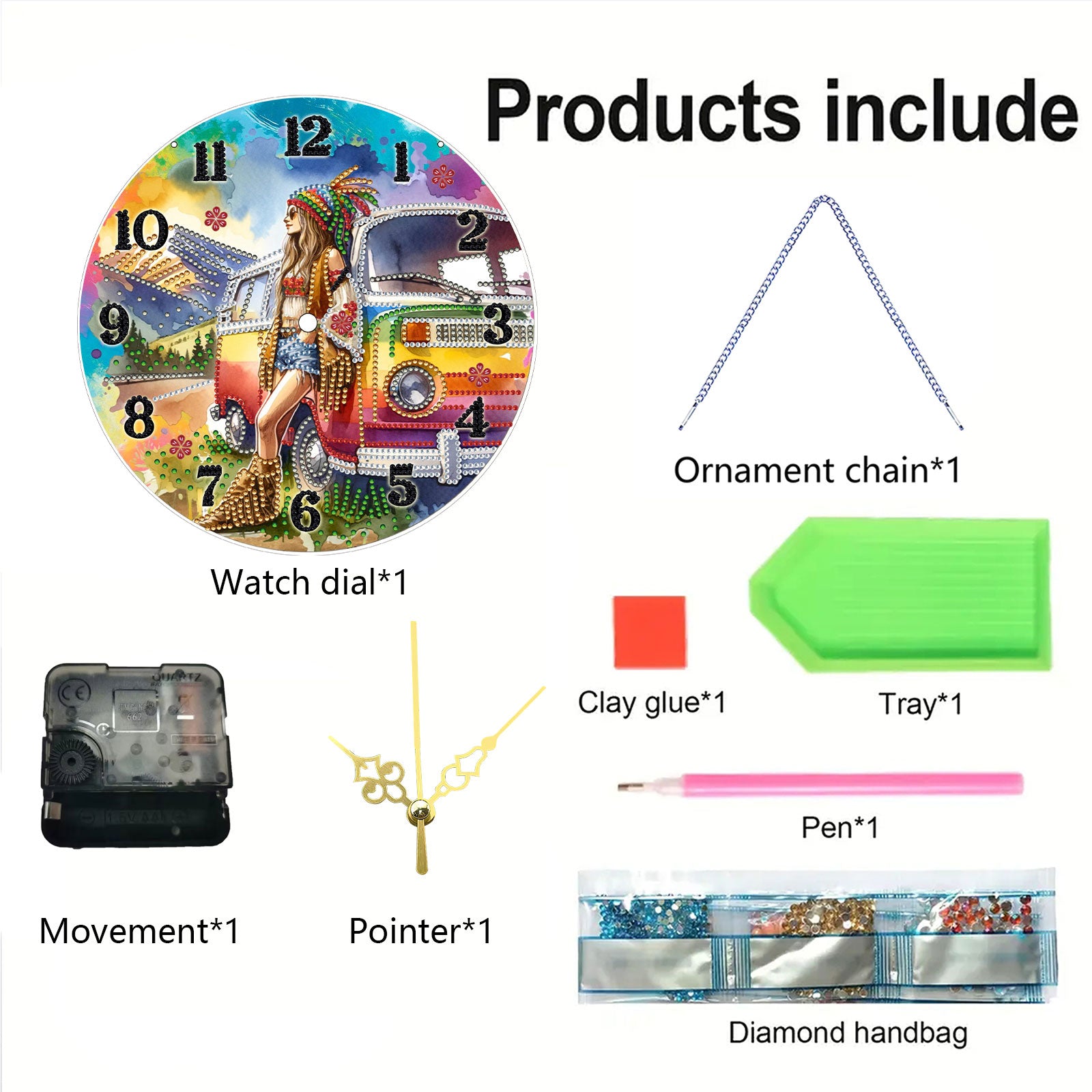 Outdoor Girl 2D Flat DIY Acrylic Diamonds Painting Clocks Home Bedroom Decor